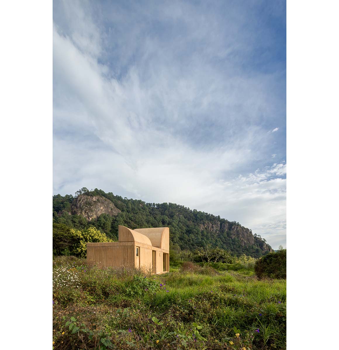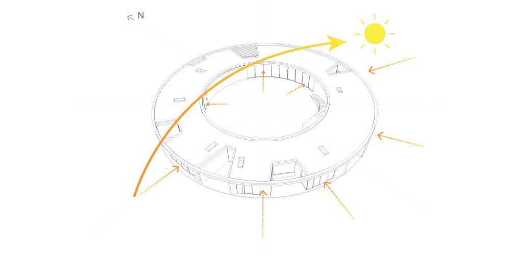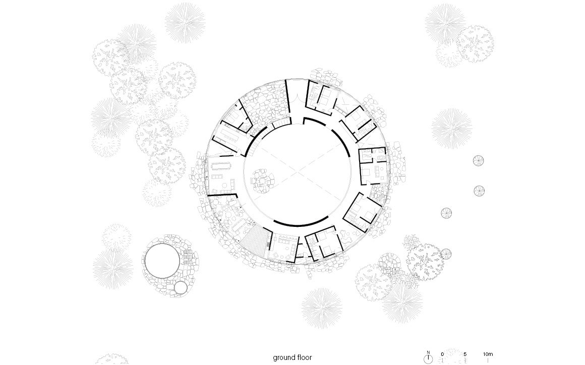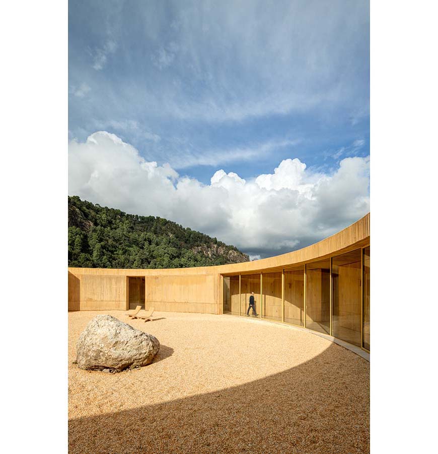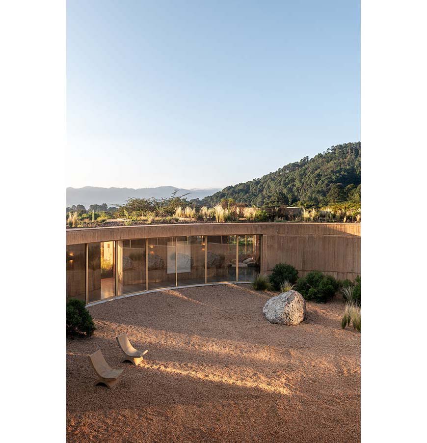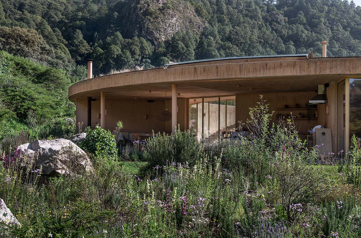 The circular geometry produces a dwelling that balances openness and stability. As architecture, landscape, and the passage of time unfold together, the house takes on the color of the land, changing with the seasons and breathing with its environment.