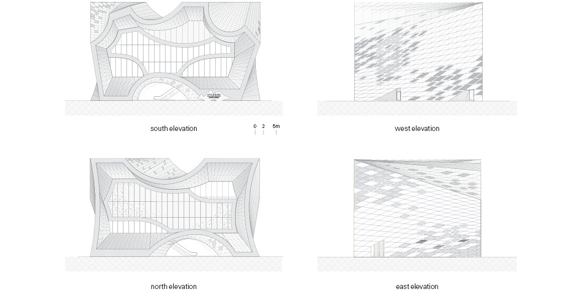 Through the sculptural wave forms, a sense of momentum in architecture is achieved. The forms convey energy and movement, taking in and amplifying the shape of surrounding mountains and water. The architectural language harmonizes with the landscape of Dadohae Park in which the pavilion sits.