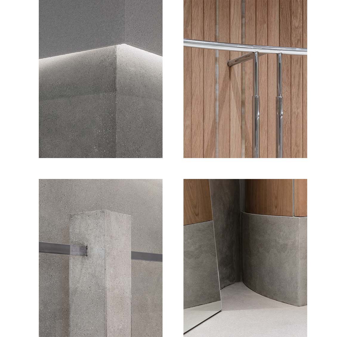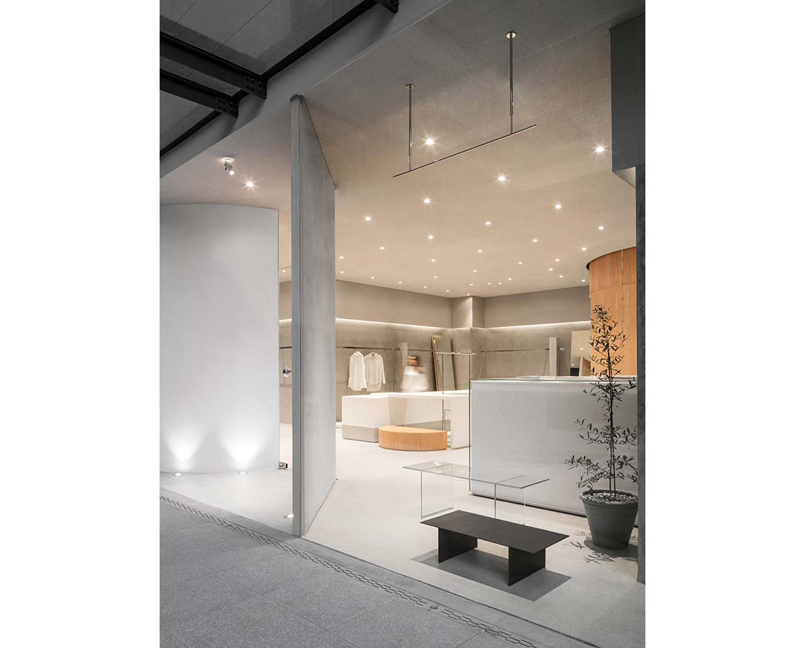 Ilma means “weather” or “air” in the Finnish language. Ilma Store, Cheongdam, was opened while “The Ilma” brand development was in full swing, so the identity of the space had to be determined and expressed with great care. The brand and space identity of The Ilma was based on modernist principles; in particular, the designers focused deeply on the origins of modernism. An artwork by the constructivist artist El Lissitzky – one of the defining pieces which helped found the modernist movement – served as inspiration for the architects. The designers introduced the geometric figures of the artwork into the space by arranging and overlapping elements of textural contrast, with the expectation of expressing a clear identity for the space.