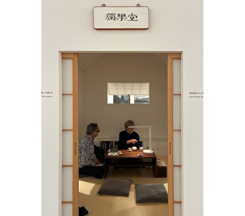 Seung H-Sang: I hope so. That is the goal of this exhibition. It consists of four parts. One is the projected texts on the wall, which express my position in the world. The second is the tables with sketches and photos – sixteen projects from the world. Then there is the installation of this small house. And finally there is the empty space between the works around the walls and the small house. In that empty space stands a single chair that I designed. Its name is the Monk’s Chair.