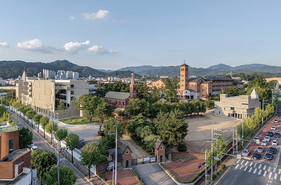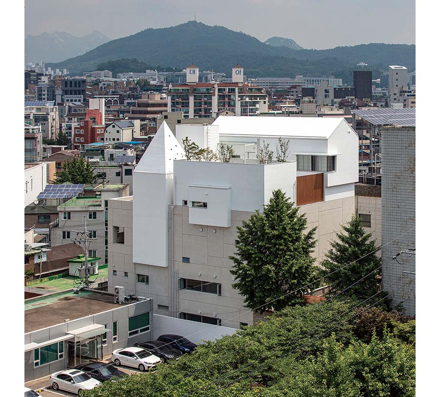 Herbert Wright: I really enjoyed going through your projects. Many are outside the city, but one urban project that enchanted me is Siudang (2017–2019), The House Where Poetry Rains, built for an actress living in a fast-changing part of Seoul. The building itself looks like poetry. Could you tell us about its design and features? For example, the spire that brings light into a 12-metre-high room, making beautiful patterns.
