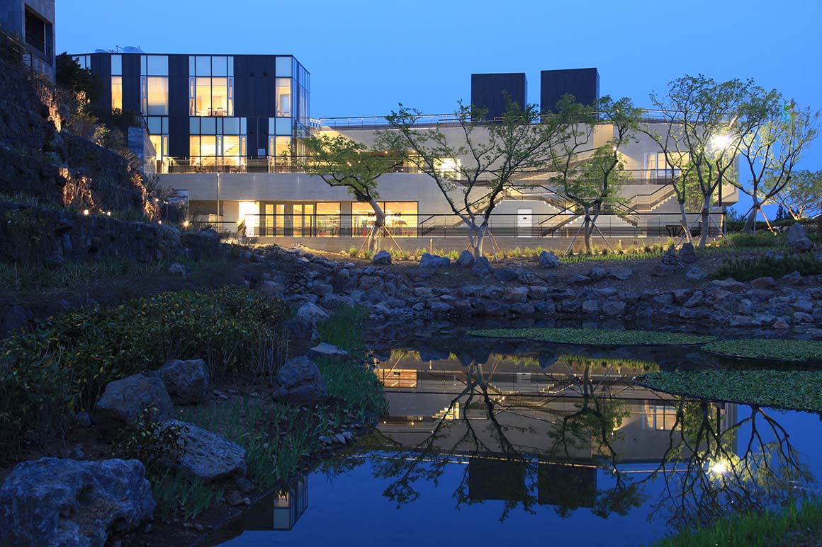 Project: Jeju Art Villas / Location: SaekDal-Dong Mountain, SeoGwiPo-Si, JeJu Special Self-Governing Province, Korea / Architect: IROJE Architects & Planners (Seung, H-Sang) / Project team: JongTae Yun / Structural engineer: Mirae ISE / Mechanical engineer: Yungdo ENG / Electrical engineer: JungMyoung / Lighting engineer: New Lite / Landscape architect: HAIIN Land+Scape Design / Use: condominium / Site area: 83,841.60m² / Bldg. area: 16,173.09m² / Gross floor area: 19,211.62m² / Building Scope: 62 Villas, 73 Rooms / Structure: reinforced concrete / Construction period: 2010.7~2012.3 / Photograph: ©JongOh Kim