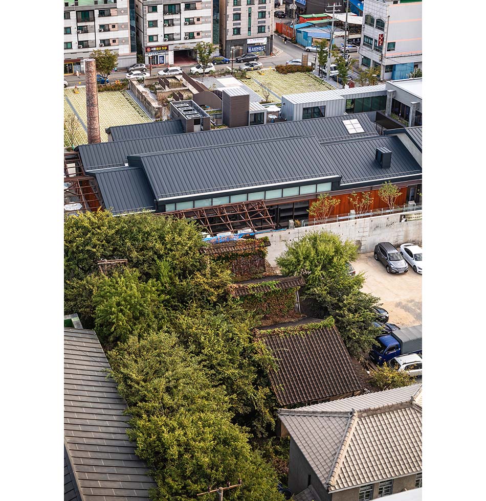 The site’s history dates back to 1927, when it began as the Sanil Spinning Factory during the Japanese colonial period. In the 1970s it became Hanlim Paper, serving as a pillar of the local economy in Jochiwon. After operations ceased in 2003, the complex was left behind an “island” within the city. Rather than erasing this vast ruin through wholesale renovation, the project adopts a stance of accepting the traces of the past as part of the landscape. Memory here is not something to be removed, but a foundation that sustains architectural authenticity.