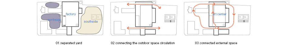 Project: Jochiwon 1927 Art Center / Location: 60-1, Nam-ri, Jochiwon-eup, Sejong-si, Republic of Korea / Architect: SAC International, ltd. (Kyungsik Hong) / Project team: Osik Na, Jinmook Kim, Bongju Kim, Yeonin Park, Yubin Um / Structural engineer: CS Structural Engineers / Mechanical and electrical engineer: HANA Consulting Engineers / Contractor: Jangbyuk Construction Co., Ltd. / Client: Sejong City / Use: cultural facilities, neighborhood living facilities / Site area: 6,169m² / Bldg. area: 1,614m² (before_1,061m²) / Gross floor area: 1,703m² (before_1,111m²) / Bldg. coverage ratio: 26.17%% / Gross floor ratio: 27.61% / Bldg. scale: two stories above ground / Structure: SC, RC, Wood / Design: 2021.3~2021.7 / Construction: 2021.9~2022.6 / Completion: 2022 / Photograph: ©Juneyoung Lim (courtesy of the architect)