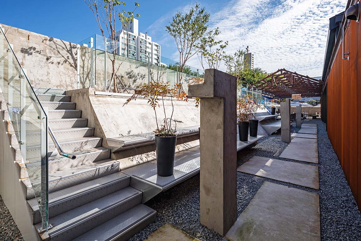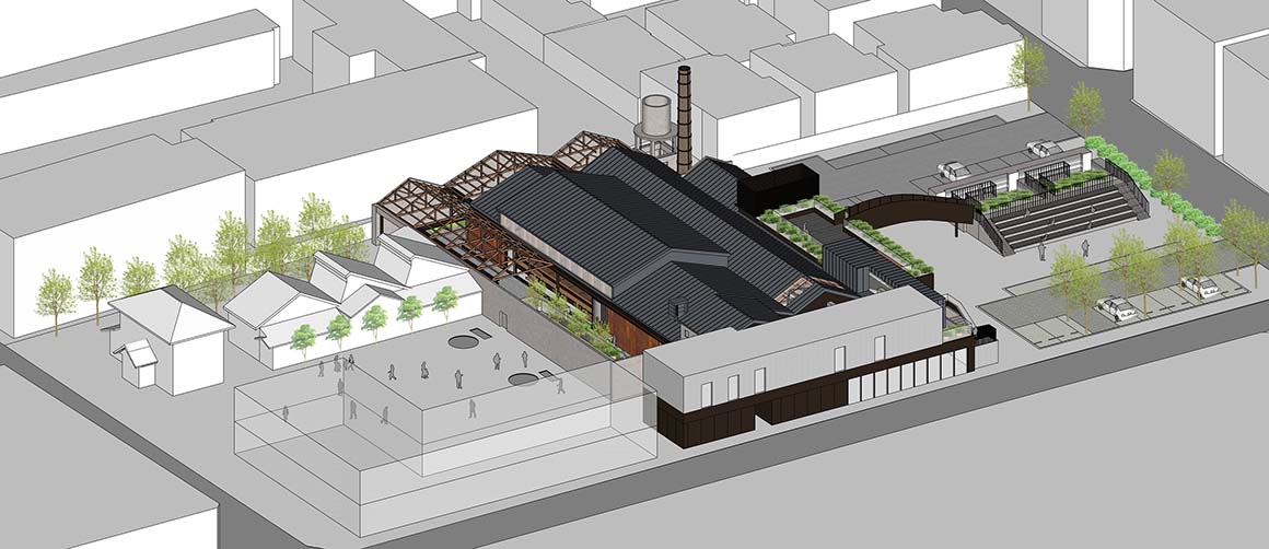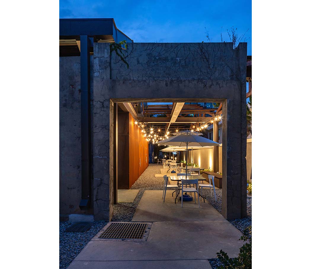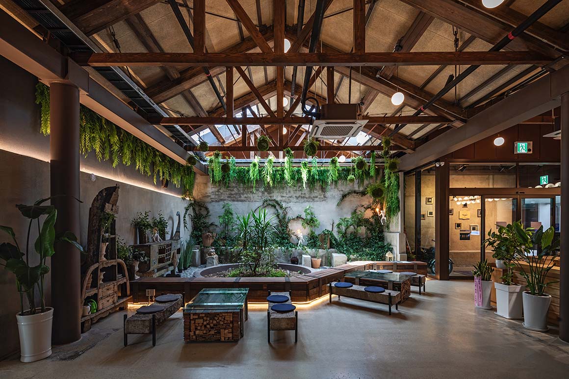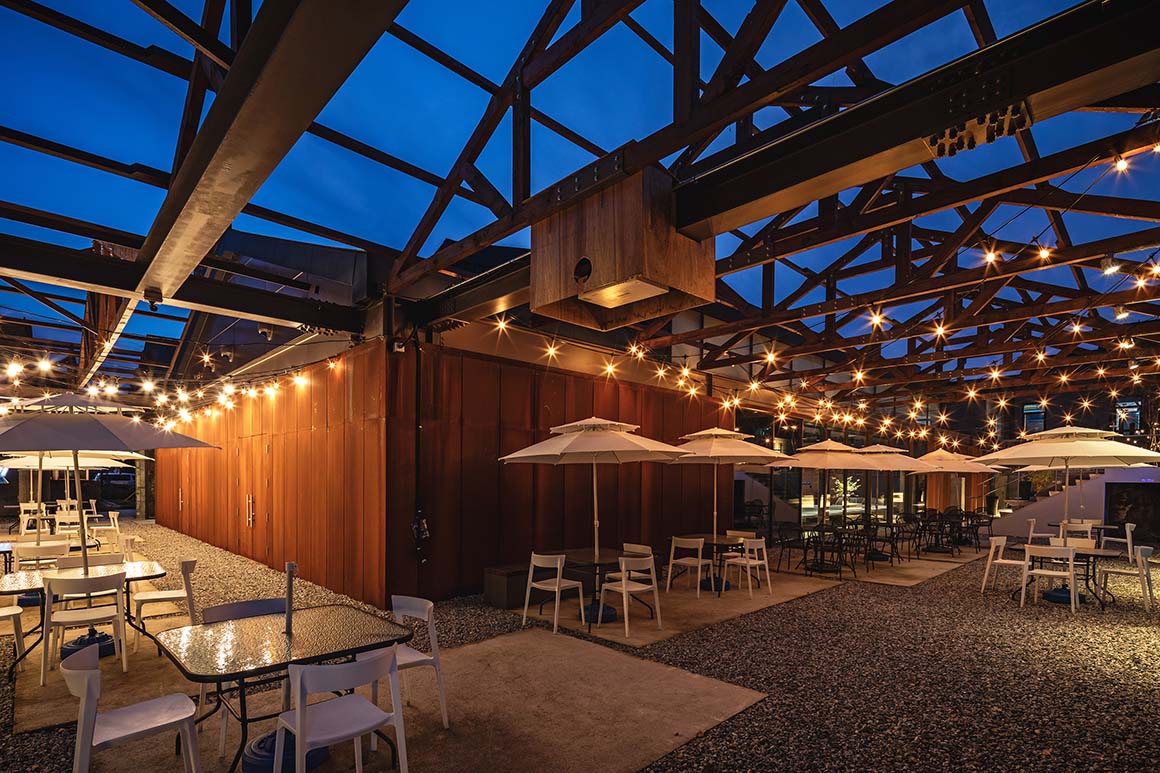 The architectural impression on site emerges from the tension between preserving the industrial archetypes and inserting contemporary functions. Red-brick walls bearing the marks of time, an iconic chimney, and rough concrete basins have been retained as much as possible. Inside the factory’s wooden truss structure—repaired and reinforced—remains exposed at ceiling level, evoking both the scale of the space and the long passage of time embedded within it.