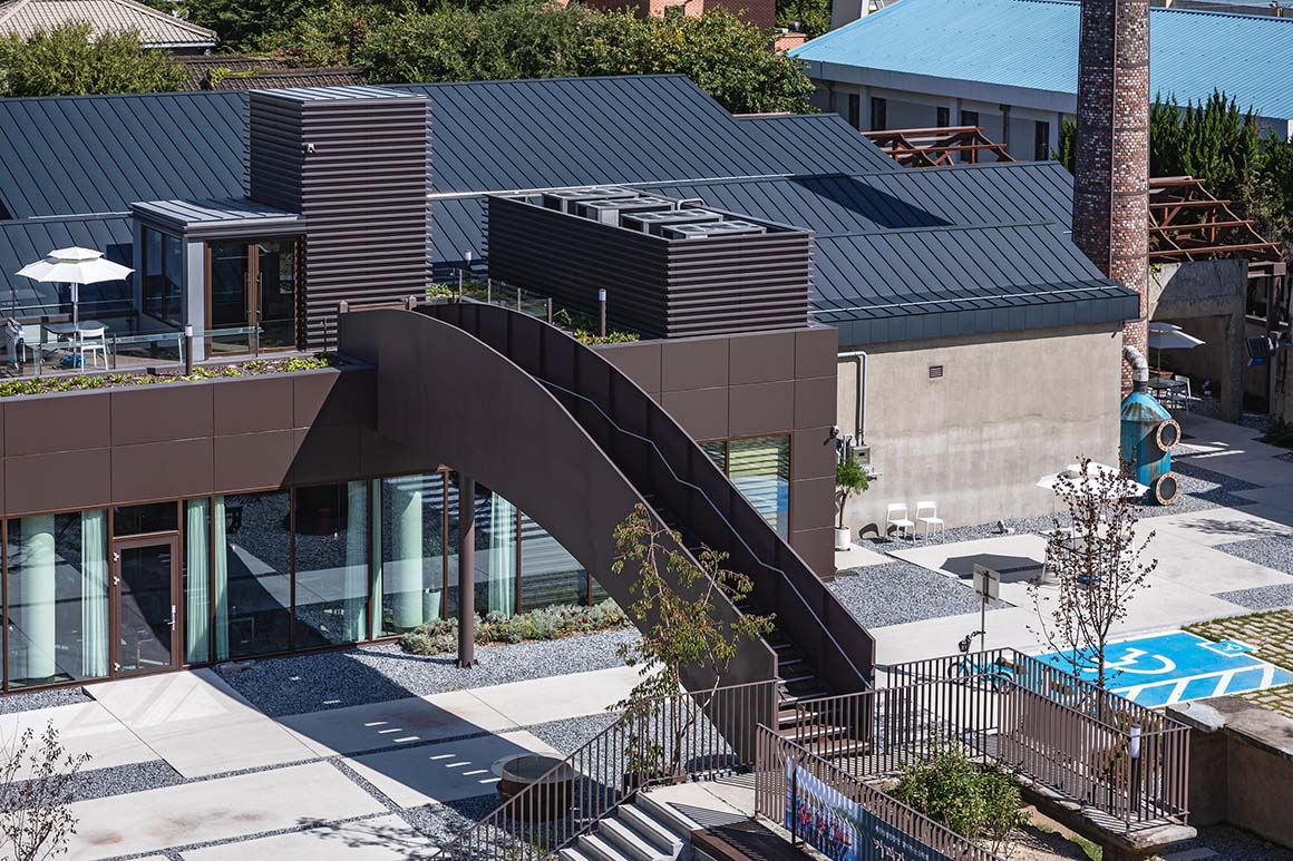 The architect also focused on undoing the physical boundaries of the once-closed factory. Disconnected circulation routes that had long isolated the site have been reconfigured into a continuous cultural landscape, naturally linking the complex to the surrounding old town. Transitional zones that gently mediate between interior and exterior invite a slower, walking-based experience, while movement from rough concrete floors to smooth exhibition halls turns the industrial site into a visual promenade.