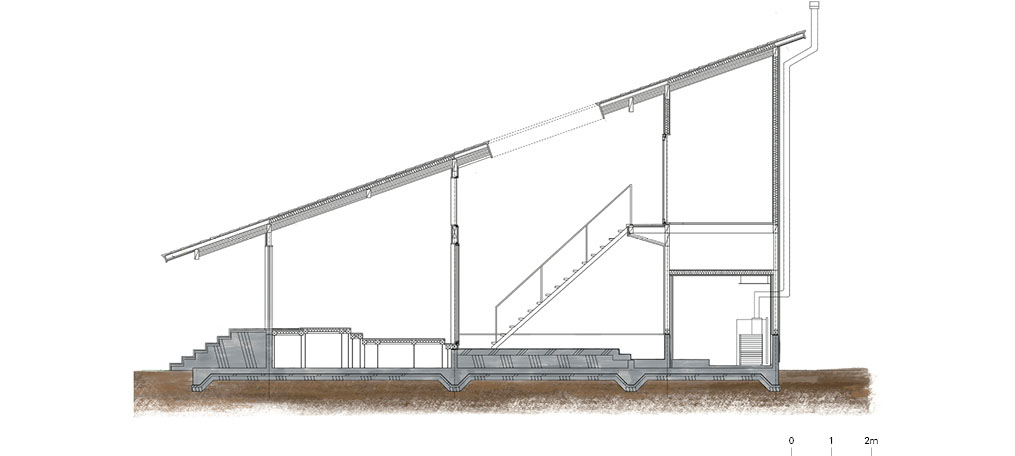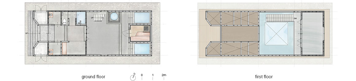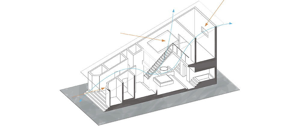 Surrounded by neighboring houses and roads, the project found its context as both “a place to dwell” and “a place where flows are generated.” This dual character—preserving the memory of the city and its culture while creating new movements—is expressed through the motif of the climbing kilns scattered throughout Kasama. The form and construction principles of kilns placed on slopes are reflected in the building’s section and circulation system, transforming enclosed conditions into an active field of relationships through a structure in which air and people circulate and linger.