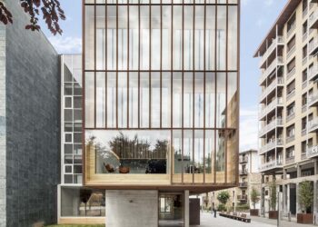 The once-empty urban space is now being filled with footsteps. This transformation began with the opening of the La Boussole Centre for Culture and Tourism in 2023. In Saint-Dié-des-Vosges, France, there was a former administrative facility site created during the city’s post-war reconstruction period that later fell out of use. The police station, high court, and chamber of commerce buildings stood shoulder to shoulder, arranged in sequence around a central garden, yet remained physically separate from one another. Through this project, the site has been reorganized into a unified complex—woven together around an expansive shared public space at its core.