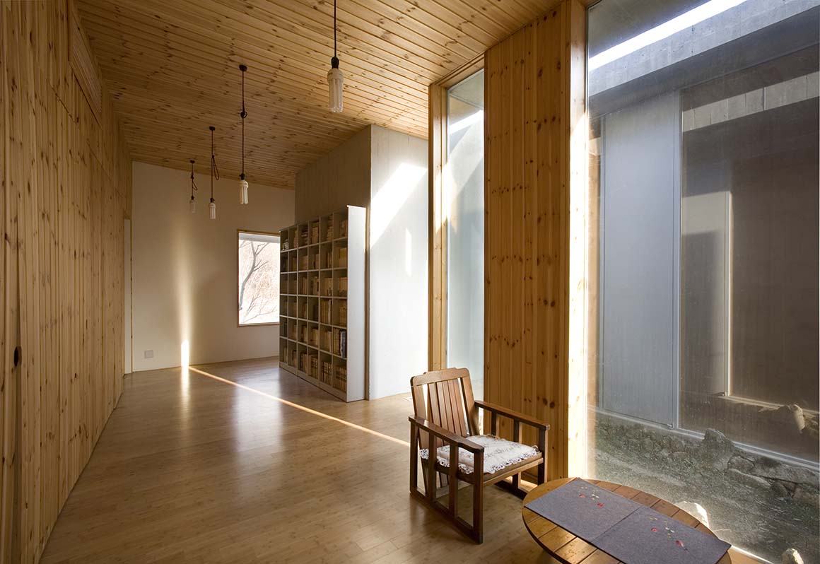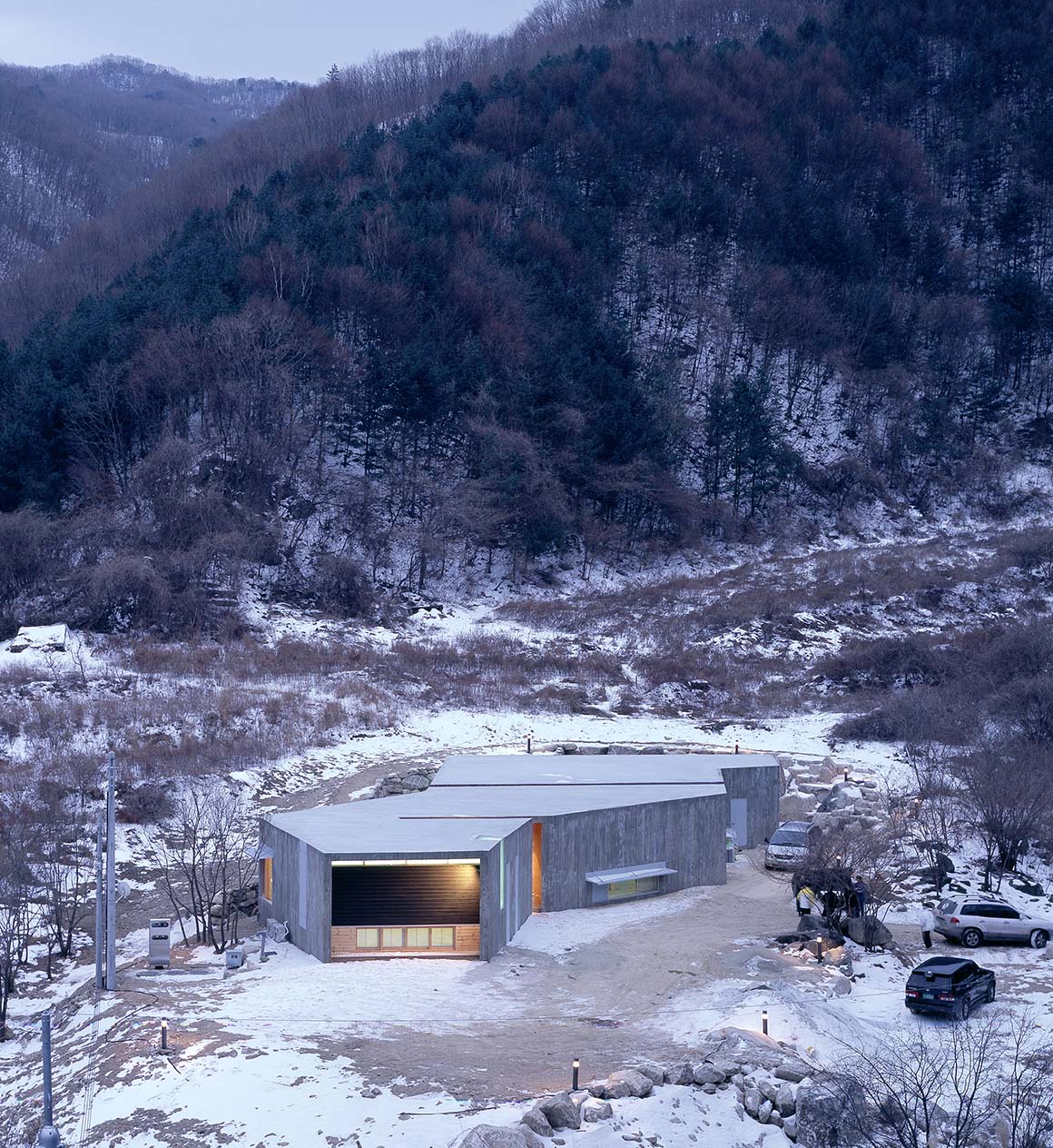 Project: Lee Oisoo House / Location: 799, Damok-ri, Sangseo-myeon, Hwacheon-gun, Gangwon-do, Korea / Architect: BCHO Partners (Byoungsoo Cho) / Site area: 1134m² / Bldg. area: 273.29m² / Gross floor area: 273.29m² / Bldg. coverage ratio: 27.33% / Gross floor ratio: 27.33% / Use: residence / Bldg. scale: one story above ground / Structure: RC / Exterior finishing: Pineboard-patterned exposed concrete / Design: 2005.2.~2005.8. / Construction: 2005.8.~2005.12. / Photograph: ©Yongkwan Kim (courtesy of the architect); ©Jongoh Kim (courtesy of the architect)