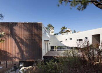 The structural format is the same as Seoul’s Urban Hive, designed by the same architects in 2008, and whose facades are perforated with circles. By combining columns and beams diagonally, a structural wall is created in which the flow of gravity comes down straight and removes the gap between the stress lines. When a glass wall that divides the interior is separated from the structural wall by a gap, the structural wall becomes an exterior skin. This method is based on the principle from the Korean traditional building, Hanok. In the case of Hanok, there are the exterior skins behind the wooden structure. It can be applied at modern structural system, reinforced concrete.