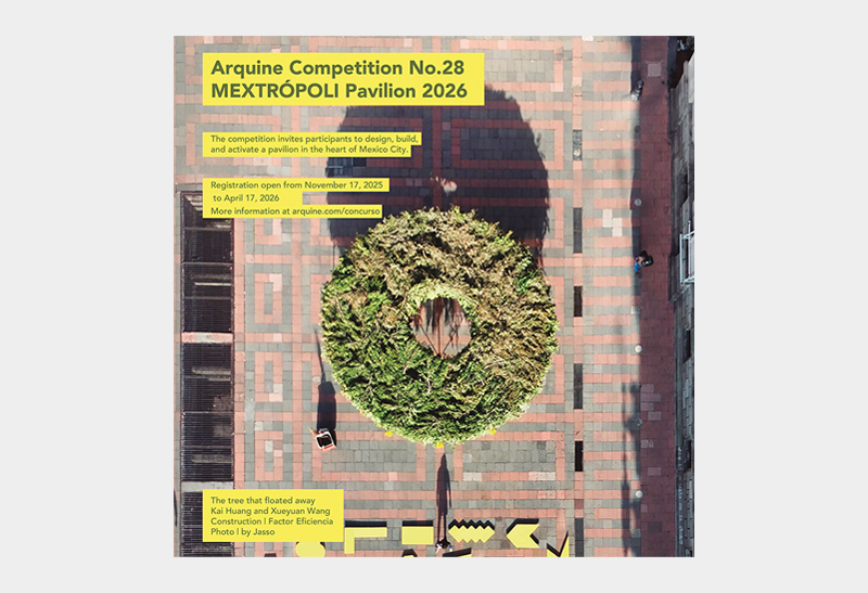 Since 1998, Arquine, a comprehensive architectural‑culture platform, has organized an international architecture competition that, in recent years, has been planned as part of the MEXTRÓPOLI Architecture and City Festival held in Mexico City’s historic center. Participants are invited to propose both the design and the activation of a pavilion. The built pavilion will serve as a node that promotes active interaction between architecture and the city, and must ensure sustainability by being reusable. It will be installed in one of two sites in the historic center of Mexico City: Alameda Central or Plaza Manuel Tolsá.