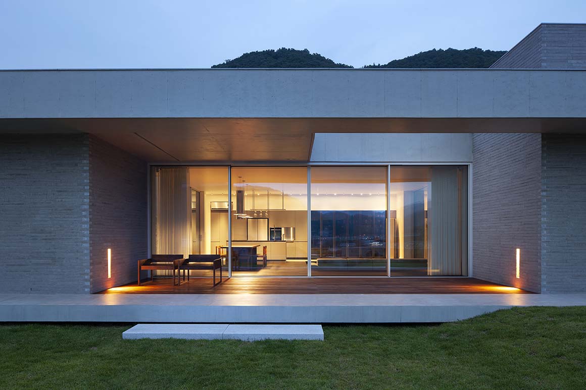 Project: Mogokri House / Location: Mogok-ri, Sanin-myeon, Haman-gun, Gyeongsangnam-do, Republic of Korea / Architects: eSou architects / Project team: Hyunsu Kim, Youngju An, Hyejin Kim, Jueun Lee / Constructor: Byeongguk Gwon / Client: Daegyeong Kim, Hyejeong Park / Use: Single Family House / Site area: 1,228.6m² / Bldg.area: 249.43m² / Bldg.coverage ratio: 20.3% / Bldg.scale: one story / Structure: reinforced concrete structure / Exterior finishing: exposed concrete, wide brick cladding, concrete crushing finish / Interior finishing: solid flooring, eco-friendly paint / Design: 2019.10~2020.4 / Construction: 2020.6~2021.2 / Photograph: ©Youngchae Park (courtesy of the architect)