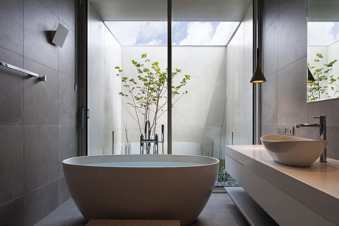 The large and small courtyards applied as a kind of boundary overlap each other. It comes in a form where the inside and outside are connected and at the same time a transformation takes place. The concept of the boundary set here is not limited to simply dividing the area. It also plays a role in influencing the inside and outside of the building by giving fluidity to the space. At the point of that boundary, the space has a sense of depth. Depth refers to the quality of space, not a physical concept such as dimensions, and it stimulates and awakens the senses in abundance. In front of the hallway, three small rooms and external spaces intersect, and in the back, two courtyards are located around the living room. The intersecting spaces visually add a sense of depth and blur and dilute the intense direct sunlight. The scattered light hits each inner space again and is changed to light with various gradations. These changed lights subtly color the house that captures the scenery of the four seasons like a canvas and touches the emotions.