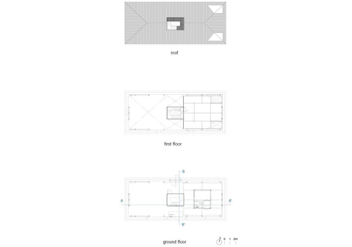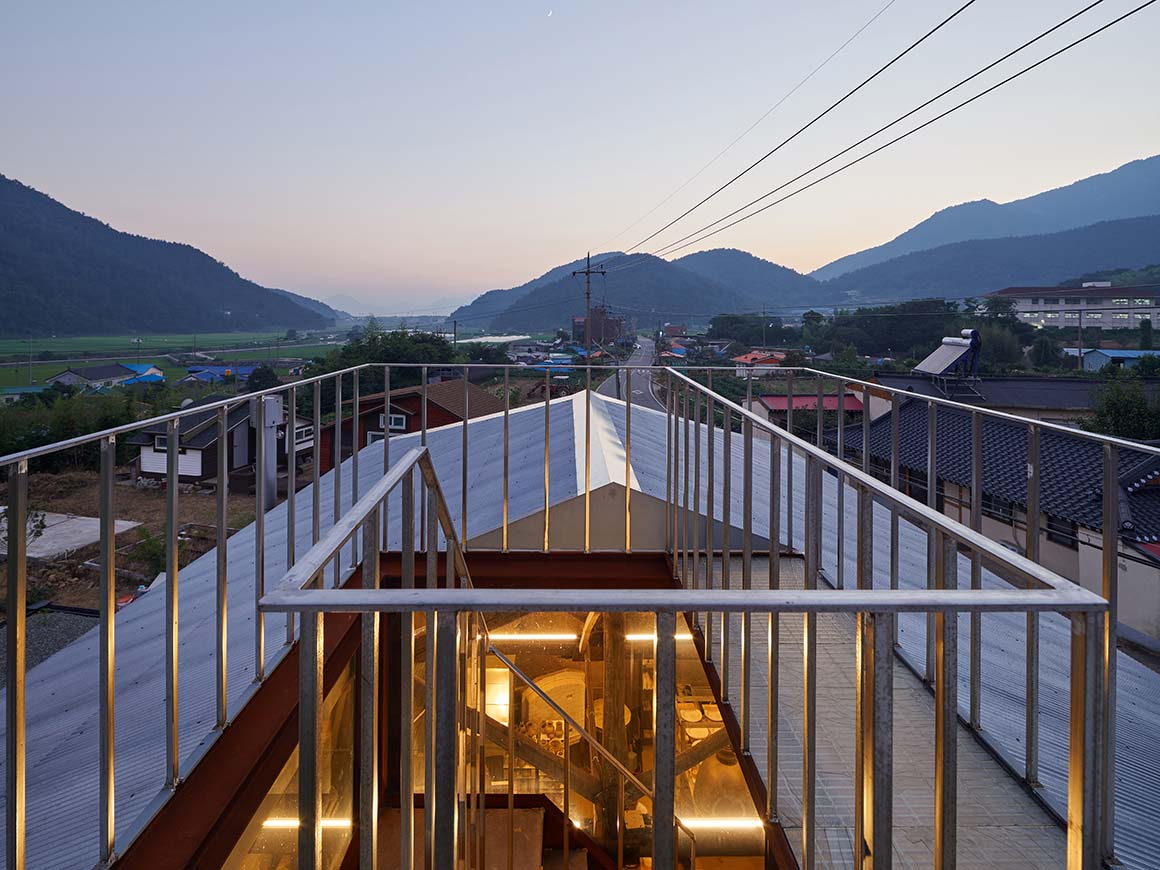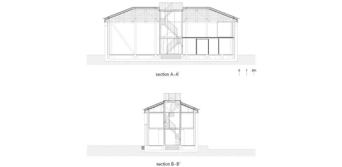 The first project is the Simoon Warehouse. Built in 1967, this warehouse was rebuilt as a gallery for young artists, and a two-story house next to the warehouse was transformed into a café and artists’ accommodation. The second project is the Daejeong Warehouse, about 7 km away. The setting around this warehouse was dreary; the warehouse built in 1965 had already become obsolete, and the wooden house was left essentially unbuilt standing next to it.