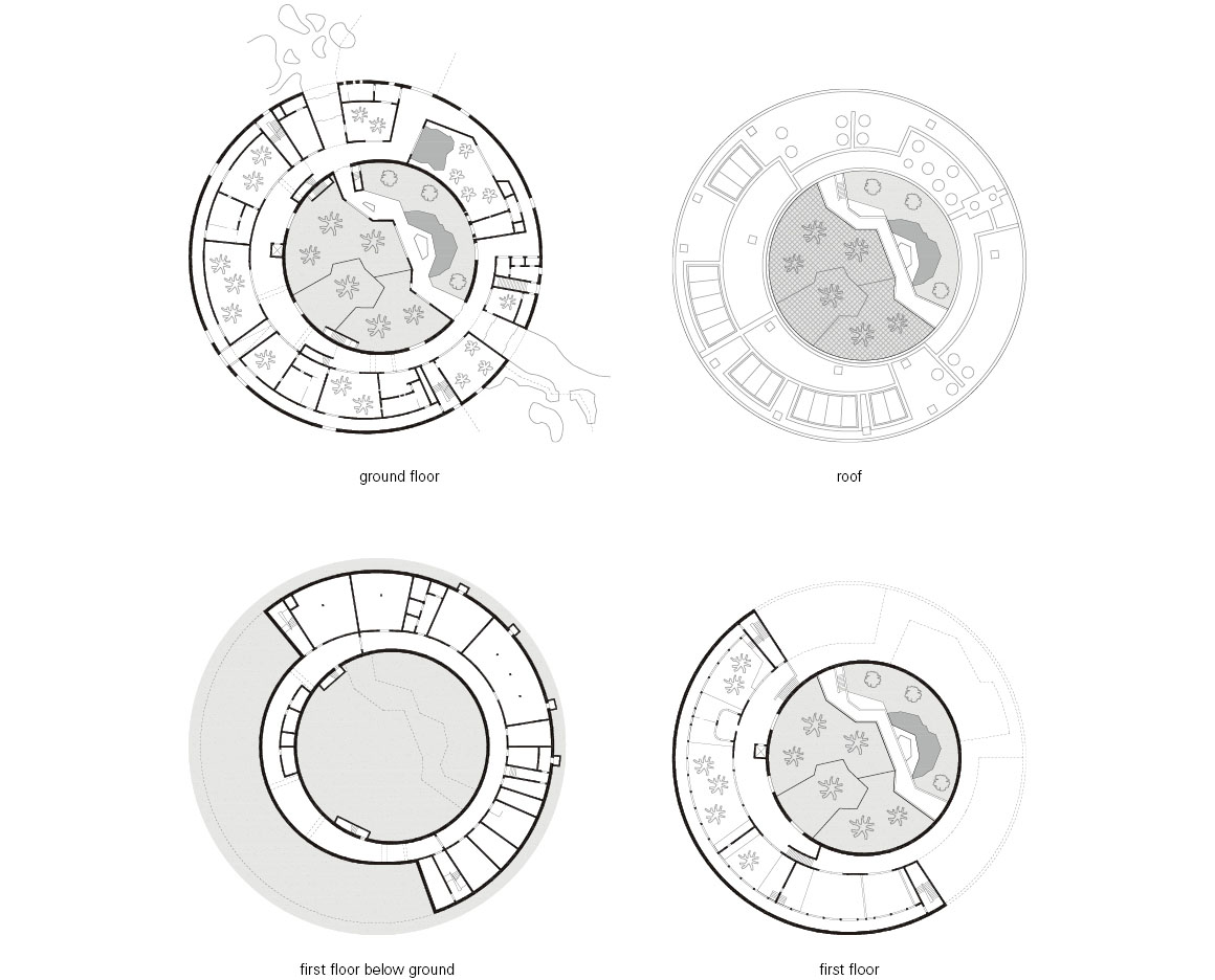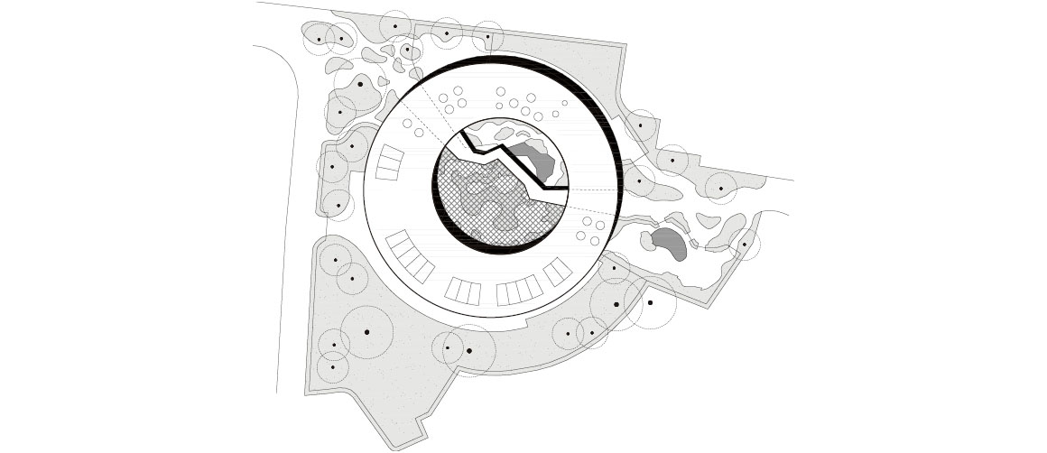 The most striking feature is the circular outer shell. Formed as a two-storey structure in parts, it is constructed as a solid mass combining reinforced concrete and masonry. The thickened walls act as a buffer against external environmental conditions. With a depth ranging from 11 to 16 meters, the circular ring accommodates indoor enclosures, visitor circulation, and service areas simultaneously, functioning as a boundary that both separates and connects interior and exterior, as well as humans and animals.