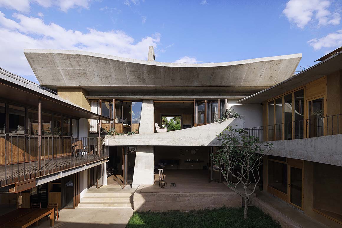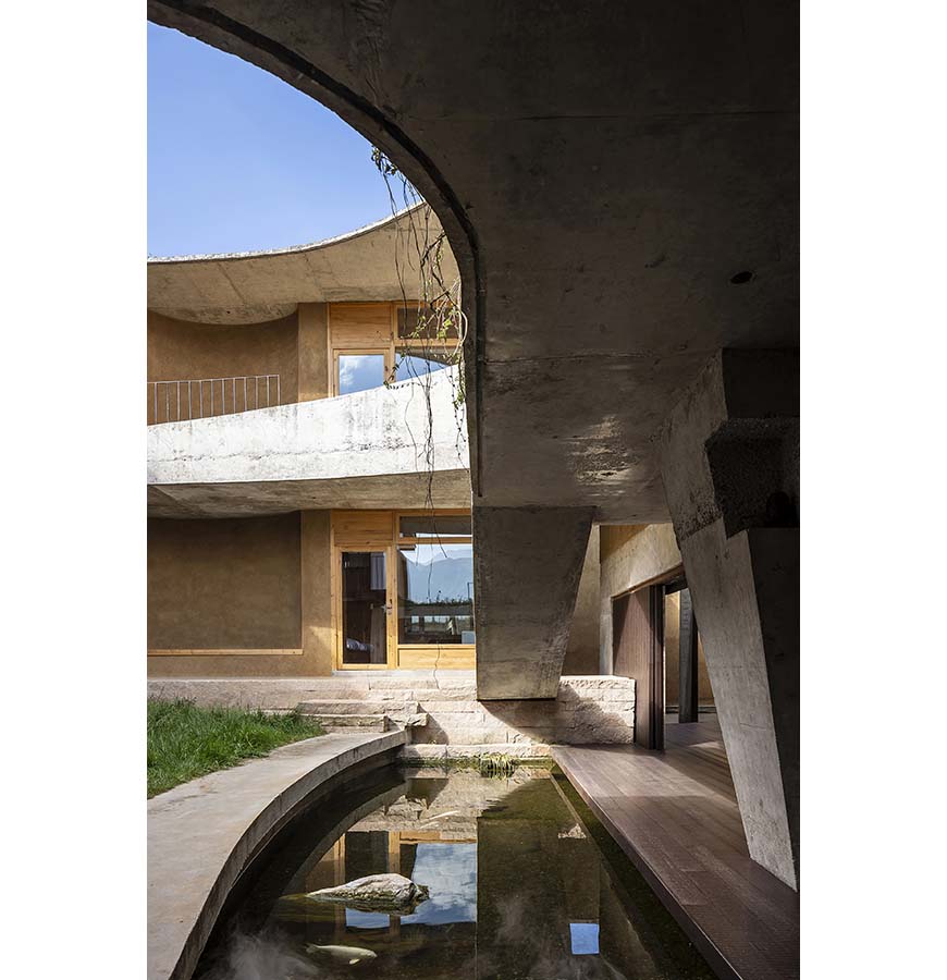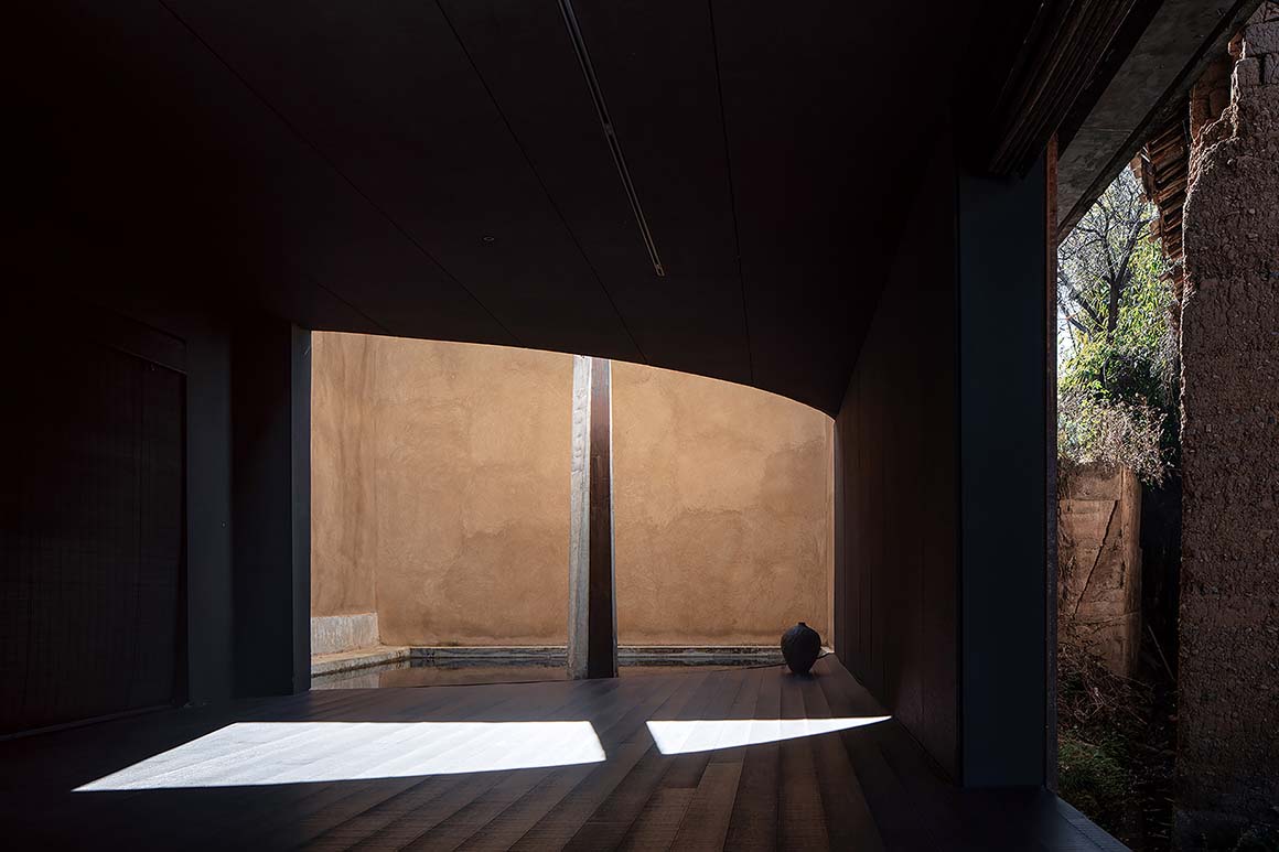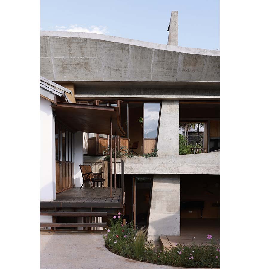Dali is a high-altitude basin with intense sunlight, where shade becomes a precious refuge. The three-dimensionally curved eaves of the first and second floors resemble a bird resting atop the house. They block sunlight and create shade while also responding to the presence of the Kuige stage in the street beyond. High clerestory windows in the tall chimney-like space bring in warm light and air, characteristic of Dali’s spring-like climate. The two tower-like volumes and the courtyard with window hoods form a composition in which wind, rain, and shade become interwoven with daily living. This shows how even a small and modest house can expand its boundaries when the subtle relationships of time, space, atmosphere, and emotion are carefully tuned.