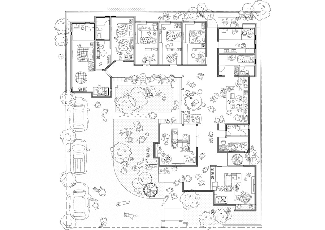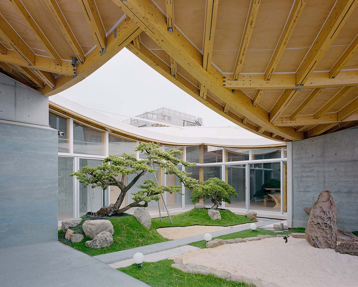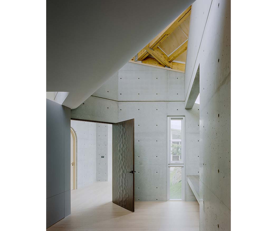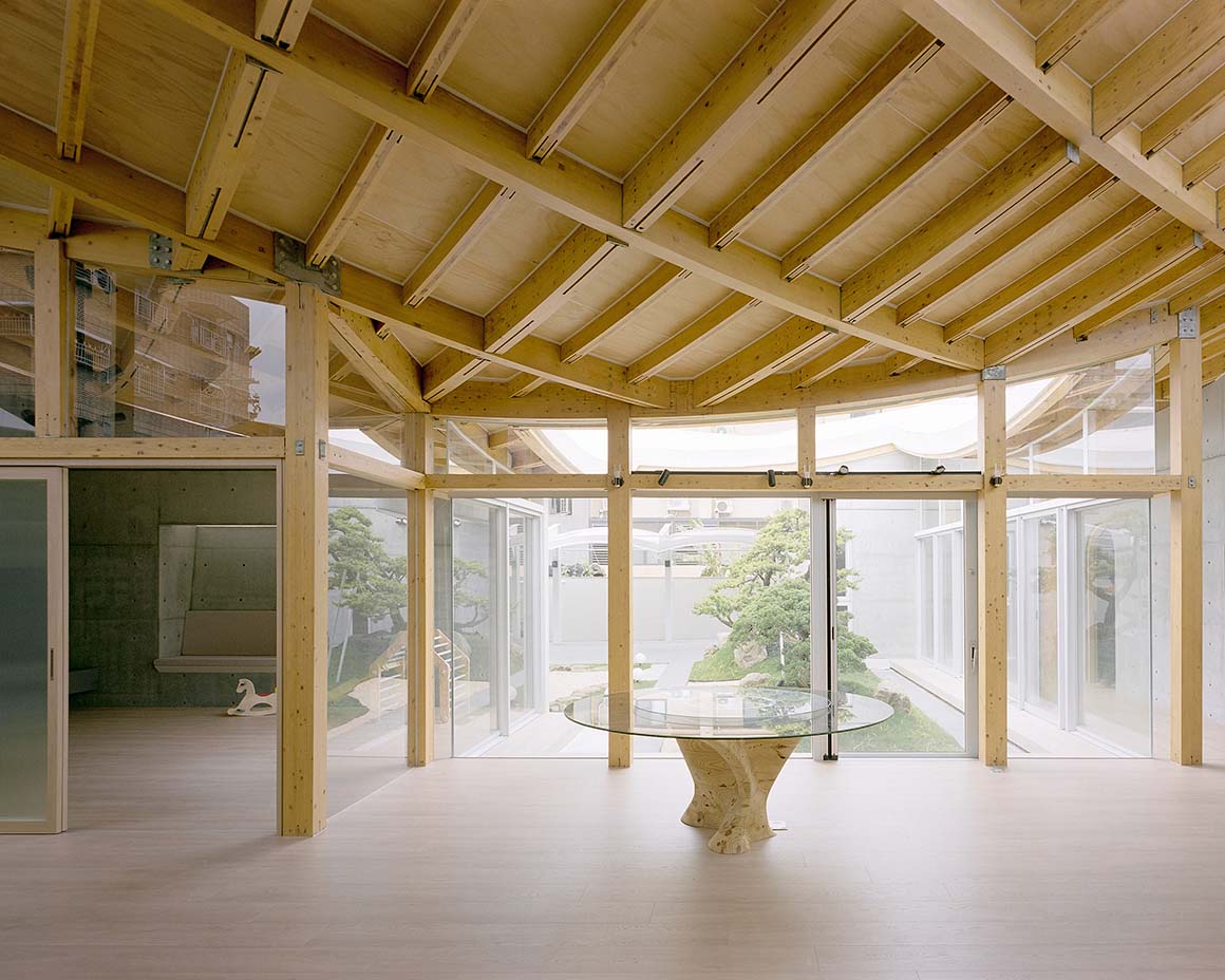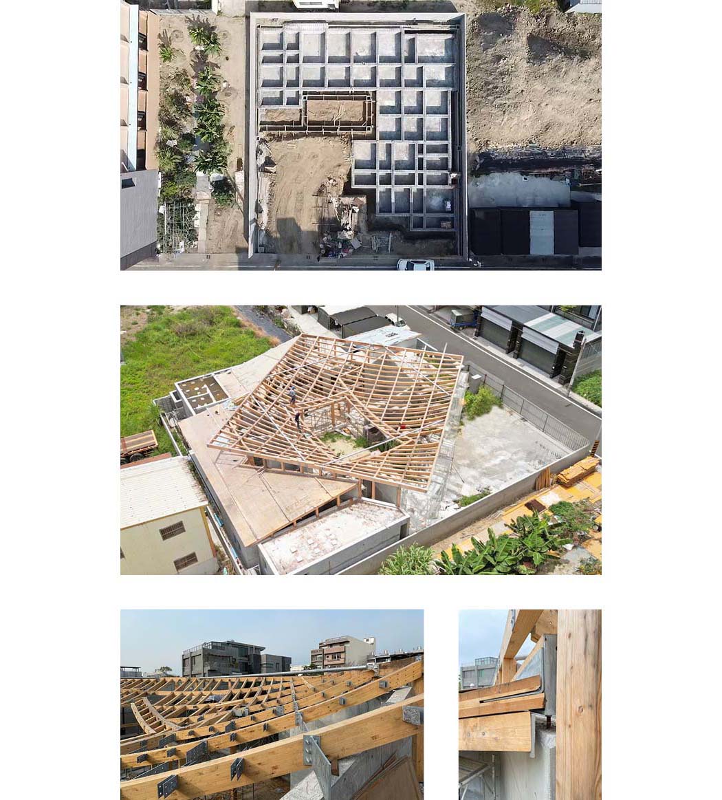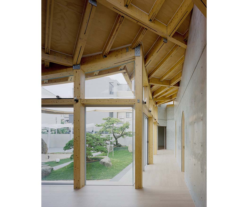Each timber member of the roof has a unique curvature. To realize this complex geometry, the structure was prefabricated using metal joints, which shortened on-site construction time and simplified the process. The lightweight nature of the timber system also reduces environmental impact and logistical demands. The natural scent of cypress brings calm to daily life, enhancing well-being in a way reminiscent of forest bathing. By overcoming the notion that timber structures are limited in scale or form, the house demonstrates new architectural possibilities while harmoniously integrating sustainability and aesthetic value into everyday living.