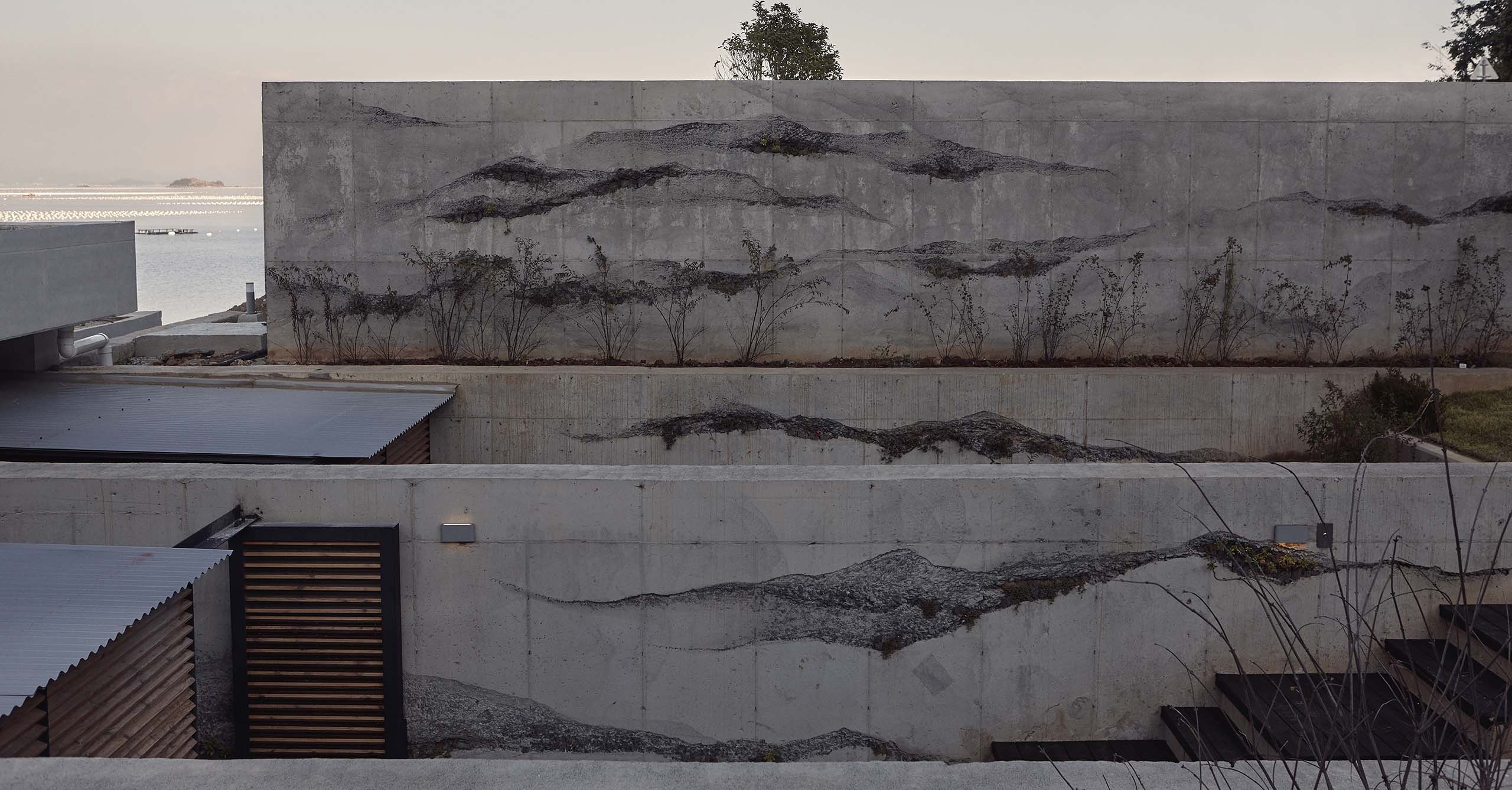 Melt Into the Earth Towards the Sea BCHO Partners With its linear, concrete forms and a roof flung open to let in the warm light, this house...