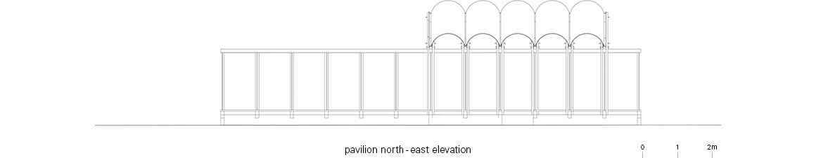 Cantilevered Arch Pavilion Built with Local Materials Forming a Symbiotic Structural Relationship