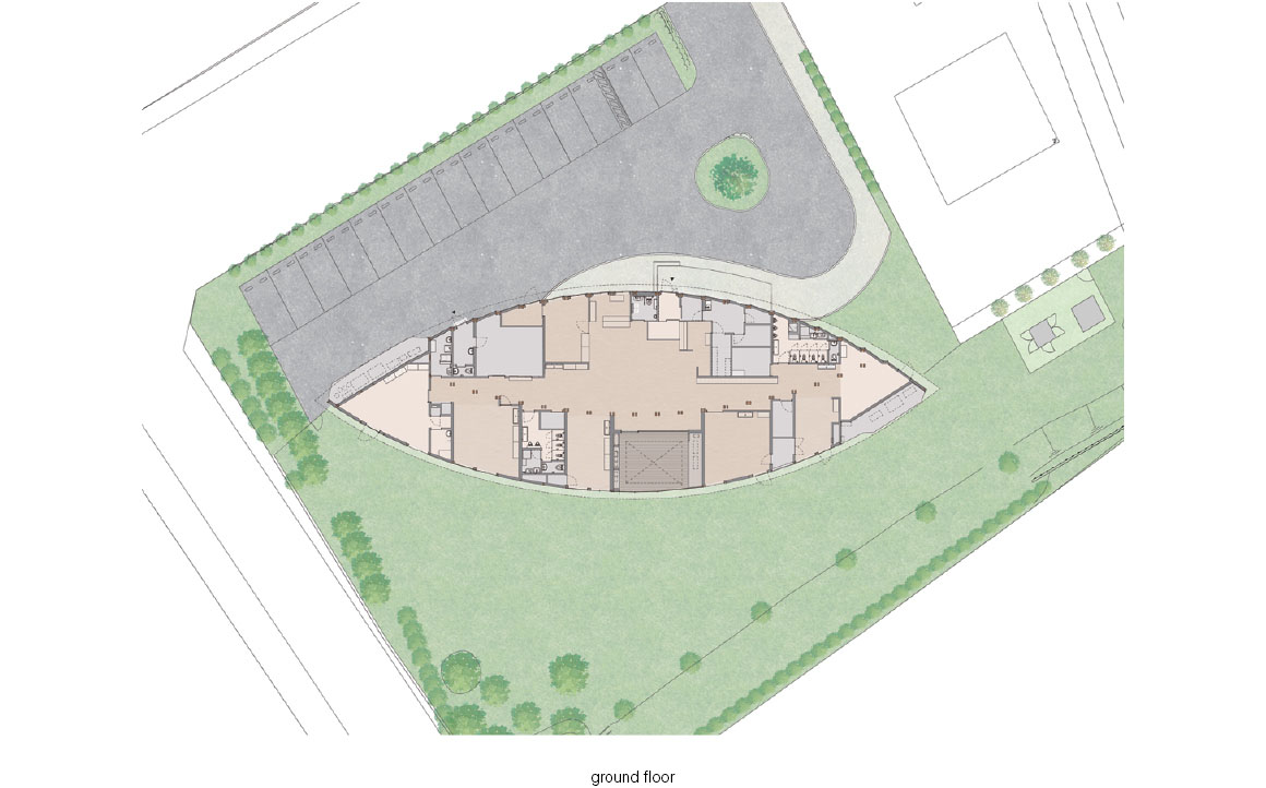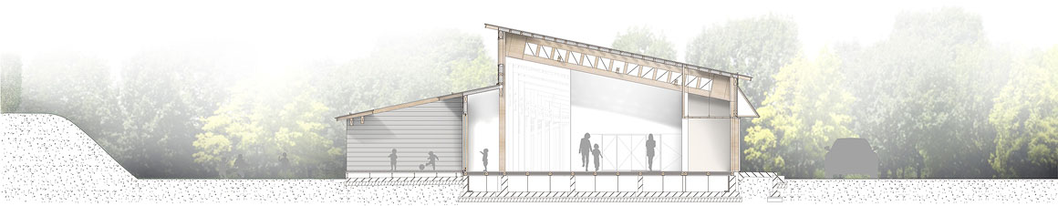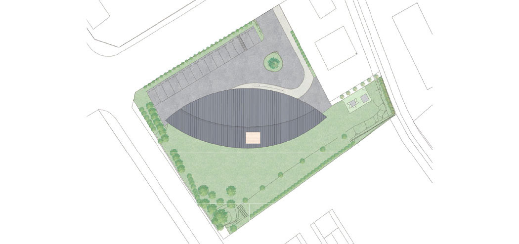 A single fallen leaf resting in the courtyard, beneath it a world that gently embraces children. In the quiet resort town of Karuizawa, this nursery school is closely connected to the richness of its surrounding natural environment. The nursery’s layout crossing the lawn, the large windows, and the space between two roofs of differing heights capture the changing seasons. On the sunlit southern slope lies a playground. The nursery forms a boundary between the southern playground and the northern parking area, while a retaining wall to the west replaces a conventional fence, dissolving edges and harmonizing with its surroundings—this is the landscape of Karuizawa Kazakoshi Nursery School.