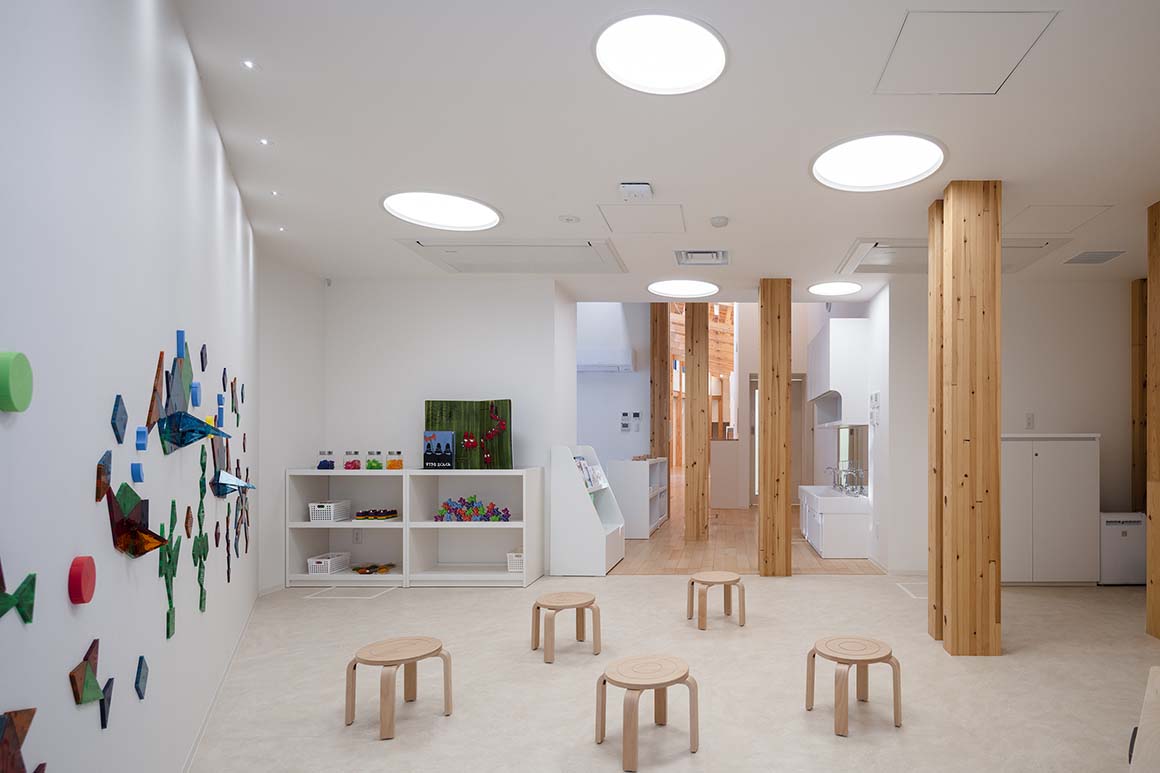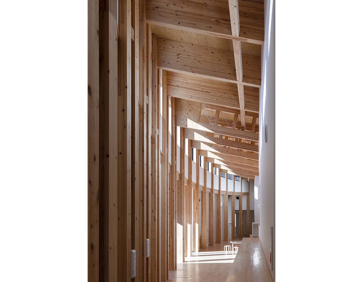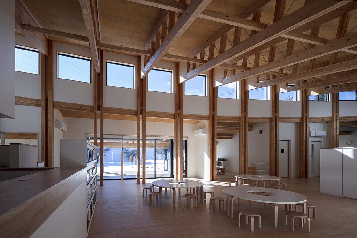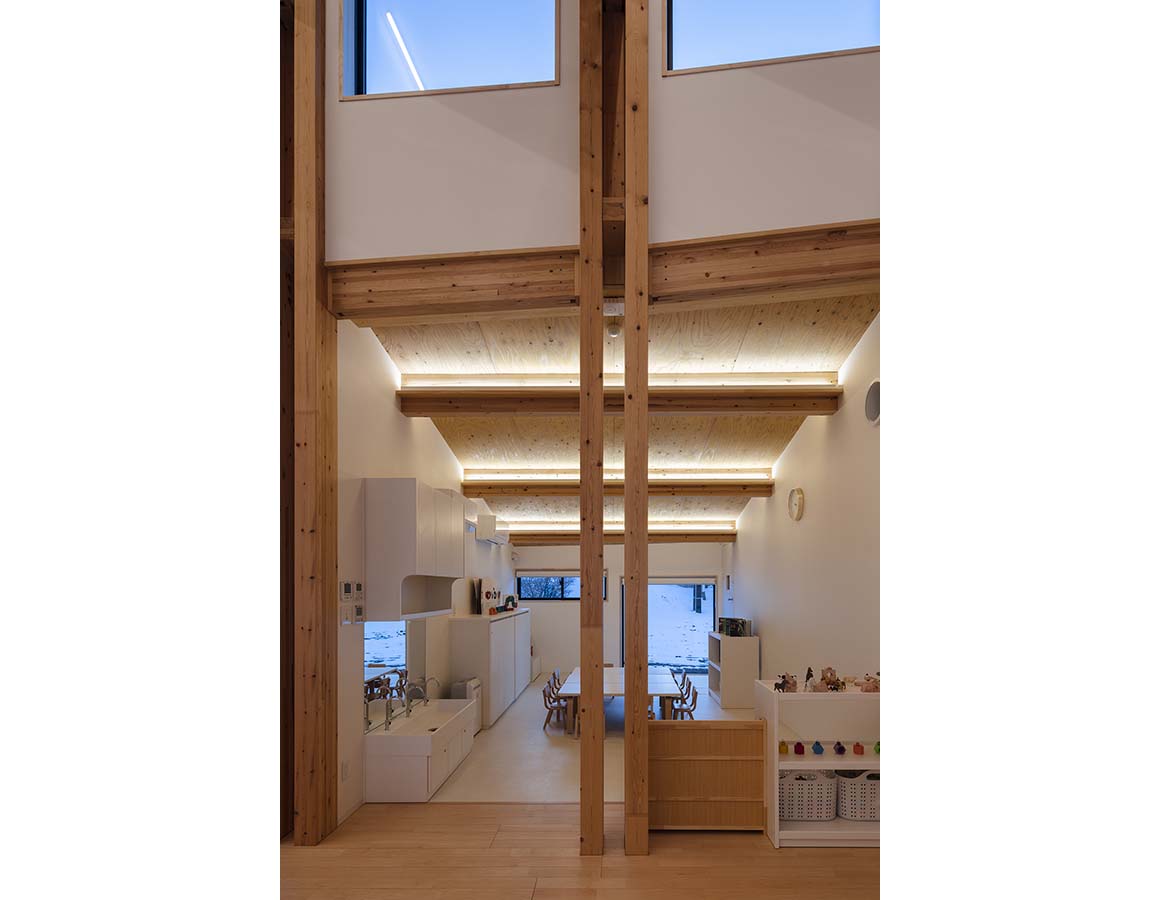 The rhythmic column grid proved an effective choice, enabling a clear structural system while improving construction efficiency within a limited schedule and budget. The use of wood as the primary material reflects the hope that children will grow up breathing alongside Karuizawa’s nature and developing an affection for the region. The children’s spaces are filled with the movements of everyday life. Here, with nature close at hand, sensing the passage of time and encountering one another, children continue to grow, step by step.