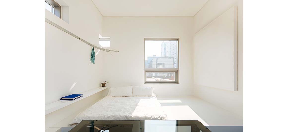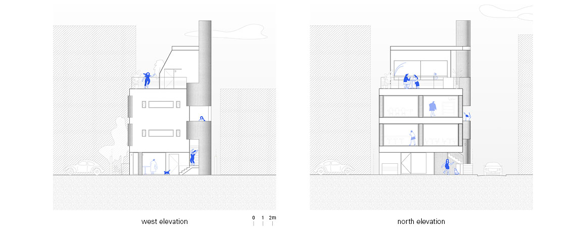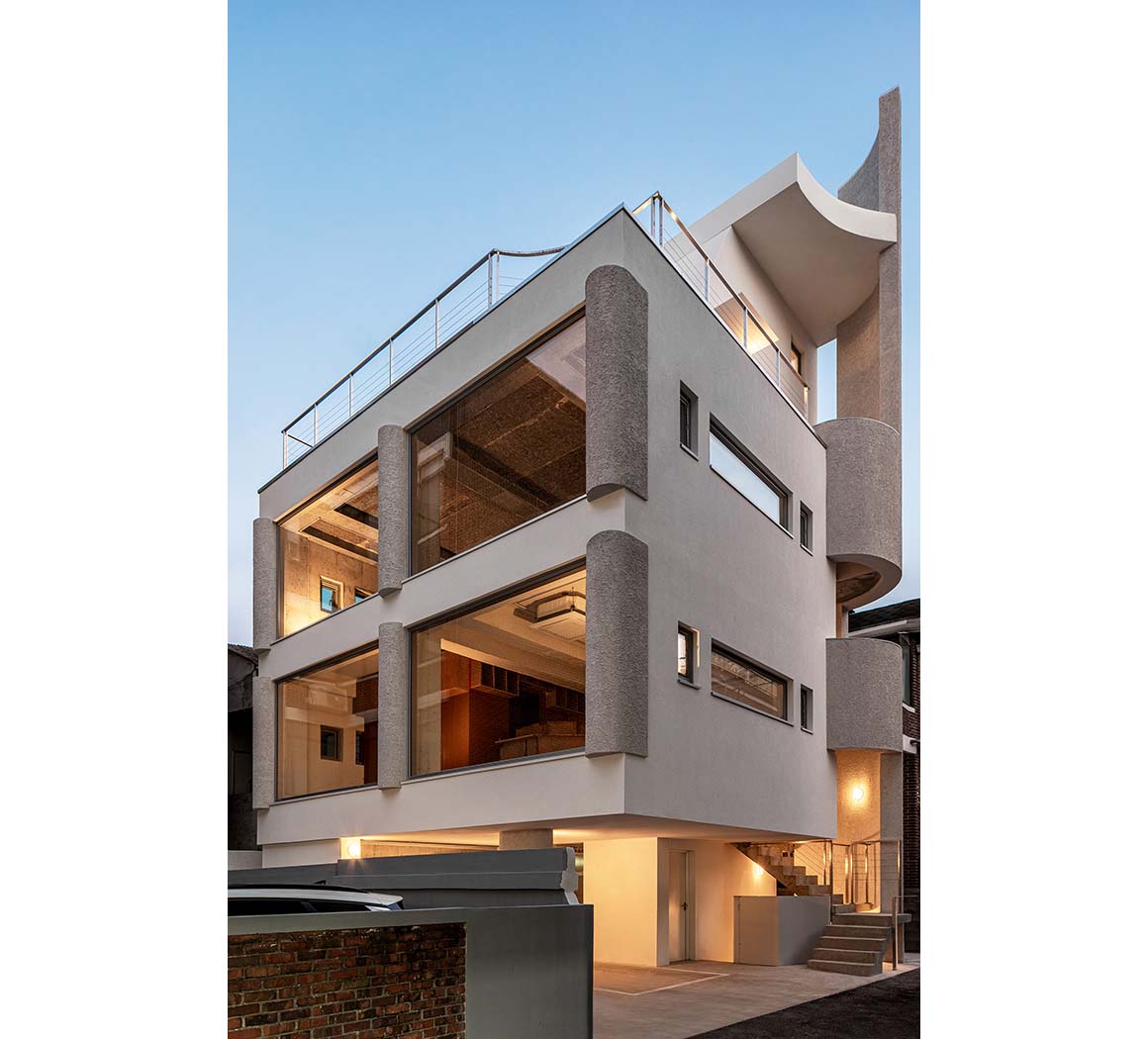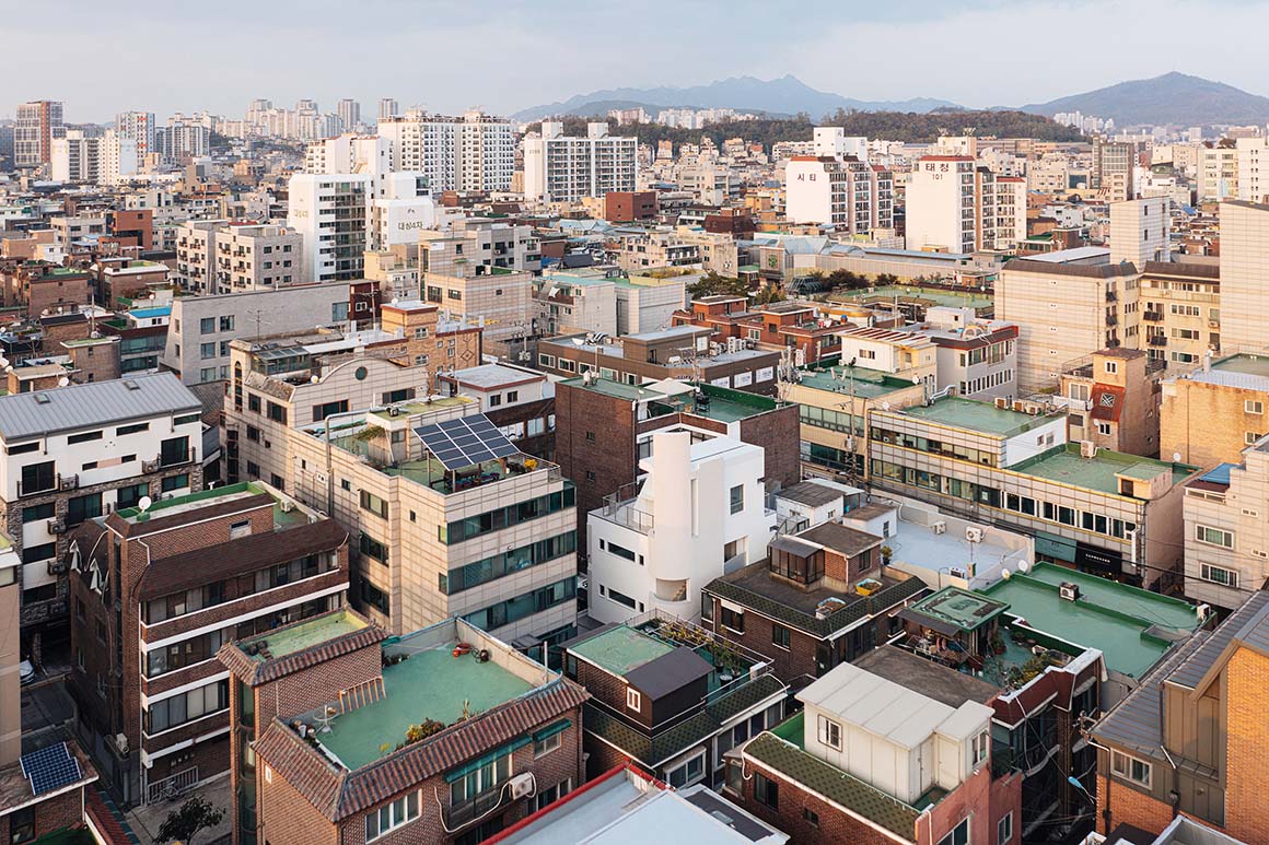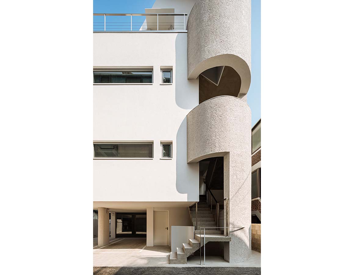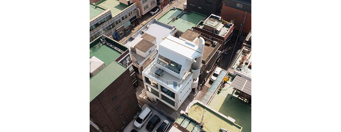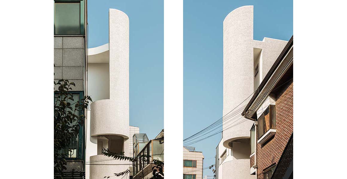 Project: REIKIS / Location: 399-34 Mangwon-dong, Mapo-gu, SeoulSouth Korea / Architect: Studio Stuckyi / Use: neighbourhood living facility / Construction: Elim construction firm / Site area: 119.3m² / Bldg. area: 68.21m² / Gross floor area: 295.01m² / Bldg. coverage ratio: 59.92% / Gross floor ratio: 185.21% / Bldg. scale: one story below ground, four stories above ground / Structure: ferroconcrete / Exterior finishing: STO / Completion: 2022 / Photograph: ©Texture on Texture (courtesy of the architect)