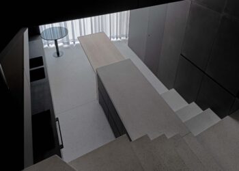 First, the initial design concept was to minimize the shape of the site, which resulted in an arc-shaped mass along the road providing a shelter for the janitors. Then, the arc-shaped mass has been elevated from the ground in order to allow the flow of the hill into the inner courtyard of the building. The floating mass is supported by the several storage rooms rather than the columns. Since these storage rooms are the continuation of the land and should portray the rocks on the mountain, they are finished with black exposed concrete and are scattered randomly on the ground. The floating mass, a shelter for janitors, is treated with exposed concrete and layered with the vertical wooden louvers. The width of the wooden louvers are especially thin as the entire building illustrates an image of the rock – storage rooms on the ground – and the branch – floating shelter – in the mountain.