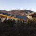 An orange carpet unfolds bridging urban roofs