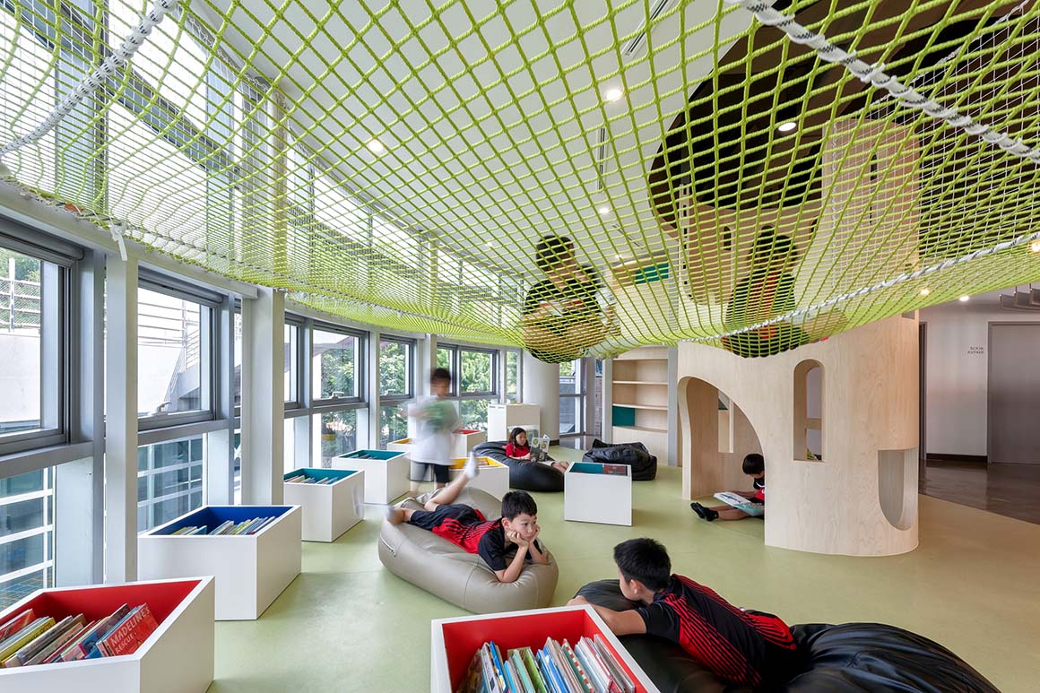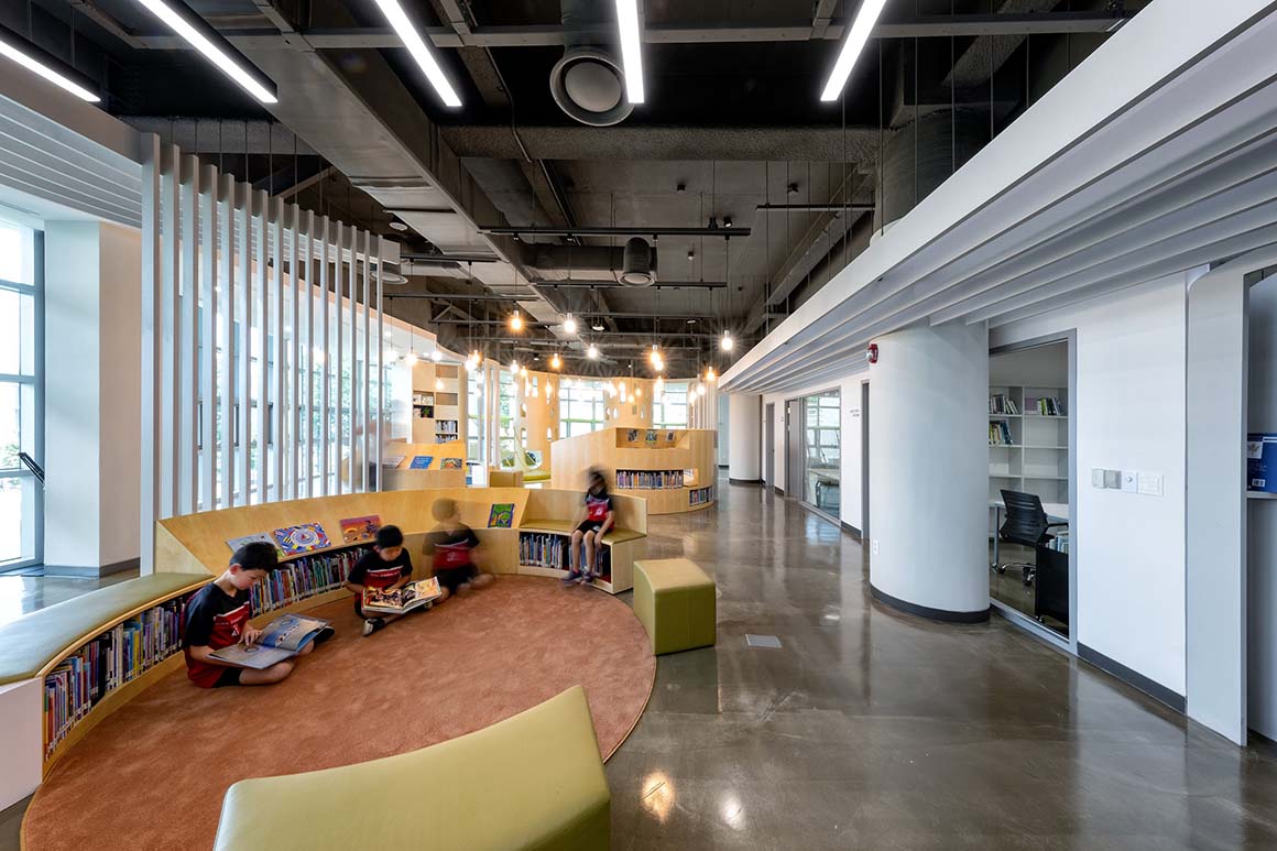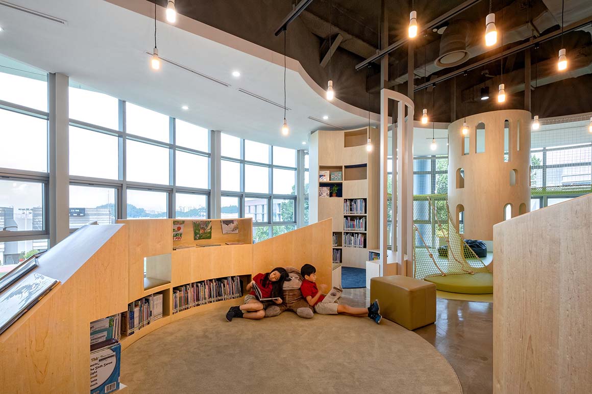 Project: Seoul Foreign School Elementary School Library / Location: 39 Yeonhui-ro 22-gil, Yeonhui-dong, Seodaemun-gu, Seoul, Korea / Project Leaders: John Hong, Seungjae Kang / Project Team: Jinwook Jang / Construction: Cplus Design Co., Ltd. / MEP Engineer: Myungbo Air / Client: Seoul Foreign School / Use: library / Gross floor area: 445m² / Completion: 2019 / Photograph: P:A