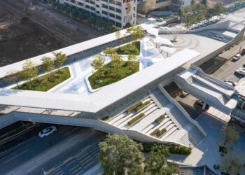 Along the straight-line spaces, a wooden structure forms cross members, while the middle is connected with diagonal braces. The outside of the wood structure is covered with solar glazing for a more diffused natural light inside.