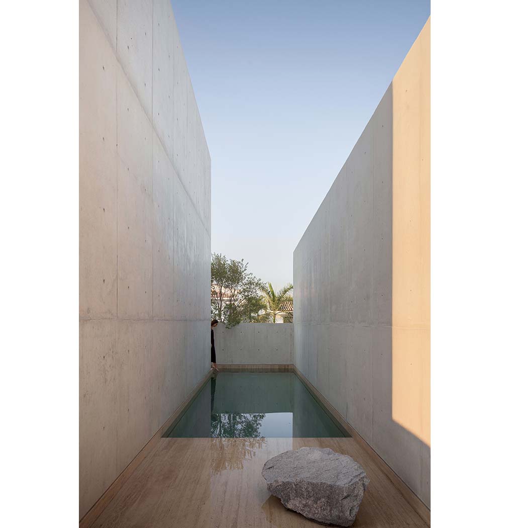 Some houses are not “designed” but “remembered”. Tao House is not a place conceived as an image on a drawing, but one shaped by the memories of its inhabitant—by the way they have lived. Gustavo‘s house is such a place. He grew up on Pacific coast in Mexico, where sun and humidity set the pace of daily life and shade becomes a precious refuge. This house, too, had to capture that refuge—stillness, seclusion, coolness that shields from heat. Here, “shade” is less a physical condition than an emotional one: a quiet pause, a moment of calm away from the noise of the world.