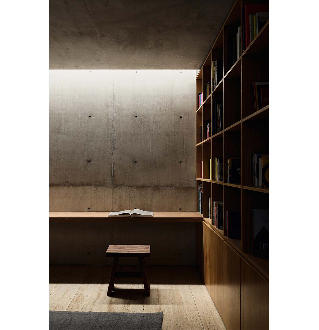Another force that shaped the house is Gustavo‘s personality—rich and layered, much like the place of his childhood. His interests range from philosophy and architecture to music and photography. His library, filled with special editions of Alberto Campo Baeza, Fan Ho, and Tarkovsky, reveals his affection for formal clarity, essential geometry, and quiet courtyards where emptiness speaks with light.