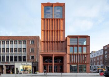 The City Palace Apartments and Office Complex is a mixed-use building by Dutch architects Atelier Kempe Thill located in the Nieuw Zuid neighborhood of Antwerp, Belgium. The orthogonal volume has a square footprint of 45m x 45m and its rectangular five-story northern facade faces a new square, Panaramkoplein. The building steps down to three stories on the south.
