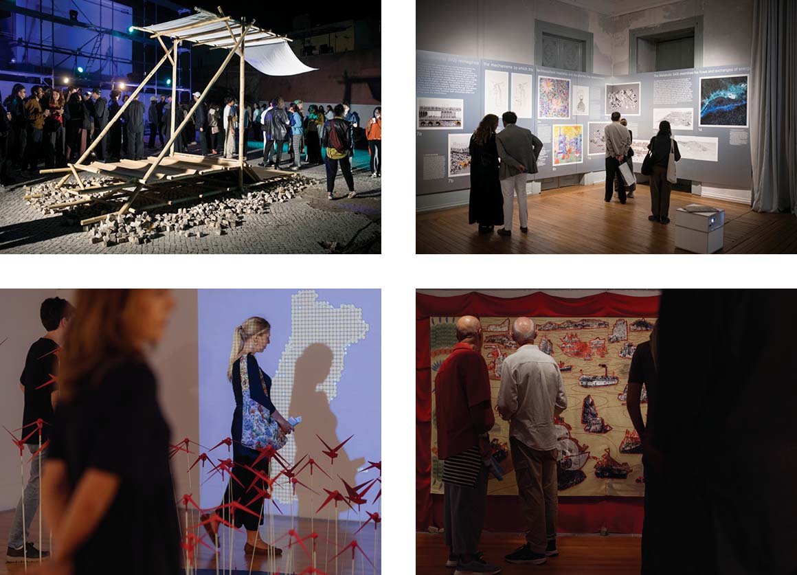 The event features three main thought exhibitions that incorporate diverse approaches from architecture, culture, science, and art. Extending from scientific thought experiments, the Gedankenausstellung (thought exhibition) concept presents ideas and structures them within spatial frameworks. Exhibition design by Lisbon-based designer Fernando Brízio integrates formats and media, including poetry, scientific literature, and literary excerpts.