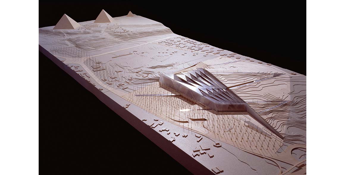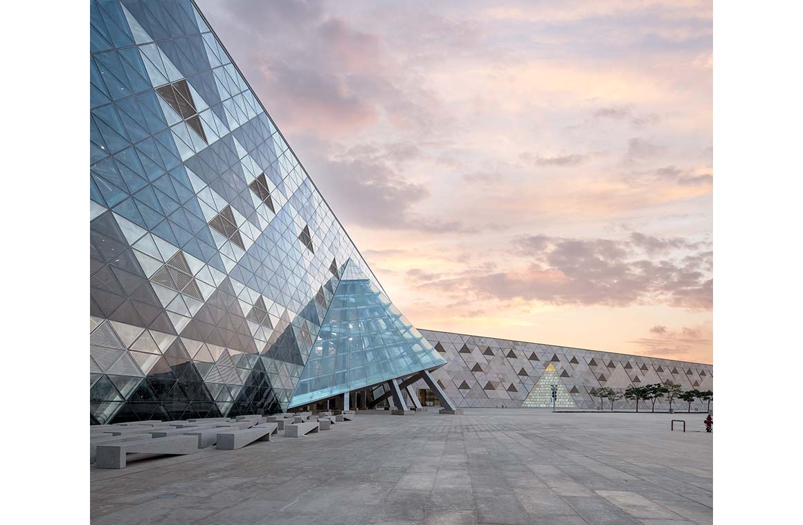 Project: Grand Egyptian Museum / Location: Giza, Egypt / Architect: heneghan peng architects / Design team management, QS: Davis Langdon / Museology: Cultural Innovations / Structural, civic, traffic, facade engineer: Arup / Building services, IT, security, fire, acoustics: Buro Happold / Landscape, public space and masterplanning engineer: West 8 / Exhibition masterplanning: Metaphor / Local architect: Raafat Millier Consulting / Local structural, civil, traffic engineer: Arab Consulting Engineers / Local building services engineer: Shaker Consulting Engineers / Local landscape engineer: SITES International Egypt / Specialist lighting: Bartenbach Lichlabor / Signage & Wayfinding: Bruce Mau Design / Client: Ministry of Culture, Egypt / Use: museum / Gross floor area: main museum and conference centre_100,000m²; conservation centre_18,000m²; energy centre_11,000m² / Competition: 2003 / Completion: 2025 / Photograph: ©Iwan Baan (courtesy of the architect); ©Georges & Samuel Mohsen – The GS Studio (courtesy of the architect); Courtesy of Grand Egyptian Museum