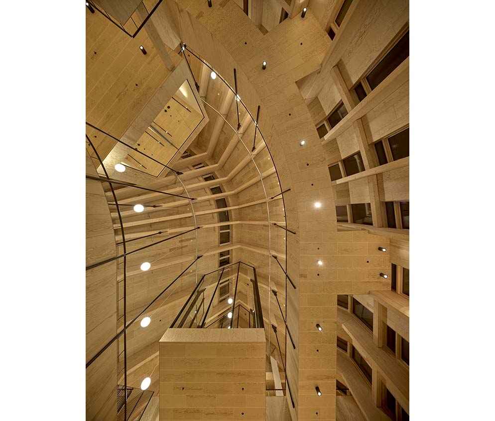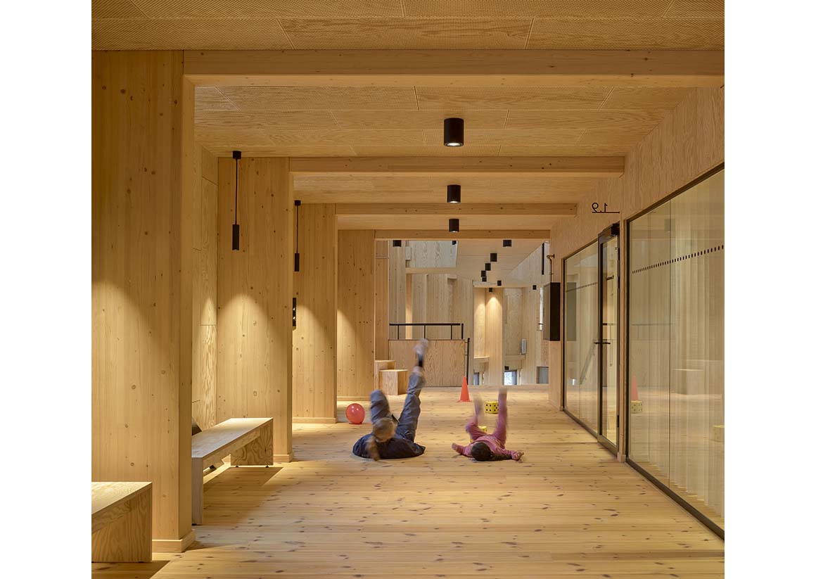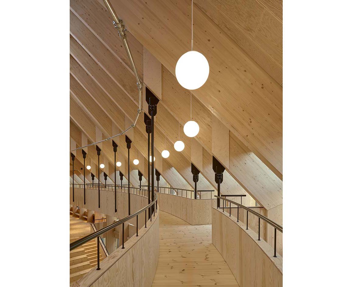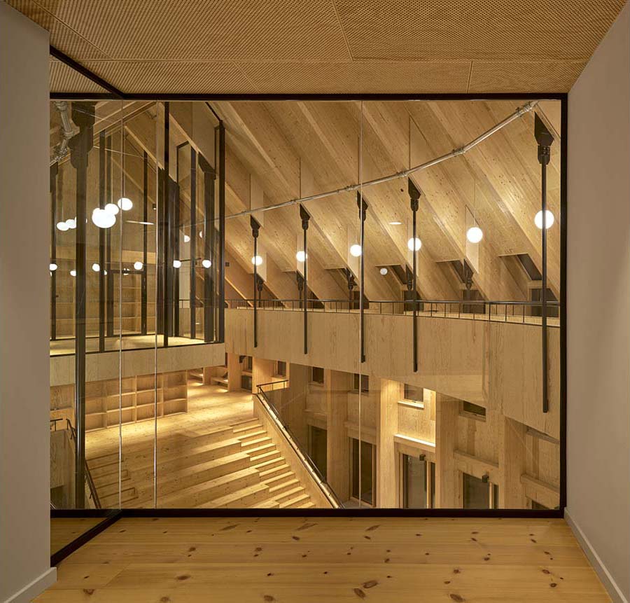 At the center is a 15-meter-high atrium formed by a timber arch structure. Named the “Heart Room,” this space is directly connected to the building’s circulation and serves as the central node that organizes relationships between programs. Classrooms, exercise spaces, consultation rooms, open meeting areas, and a kitchen for cooking workshops are arranged around it, encouraging natural interaction and chance encounters among users. A large timber staircase that also functions as seating extends beyond vertical circulation to support staying and communication as a shared public space.