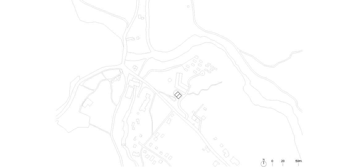 The design begins by respecting the original building’s position, orientation, and the atmosphere it once formed within the landscape. The new volume follows the proportions of the former villa, maintaining its long-standing relationship with the surrounding nature and the adjacent hotel. Stone salvaged from the collapsed structure is reused in the ground-floor façade, physically linking past and present. Rather than reconstructing the original form, the project inscribes the passage of time directly into the architecture itself.
