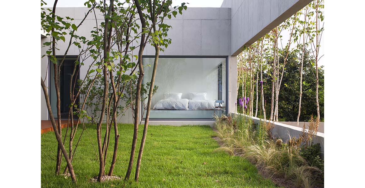 A concrete cube that breathes with the landscape listening to the light and shadow