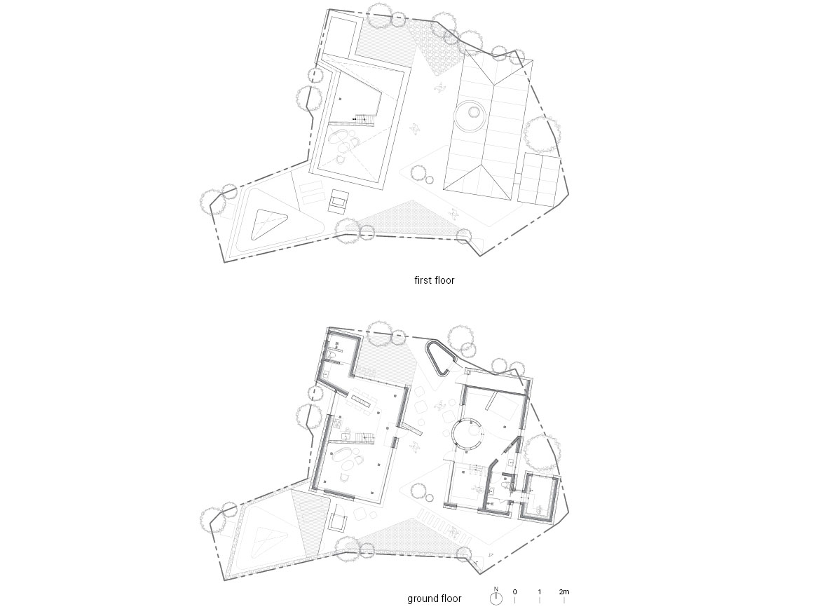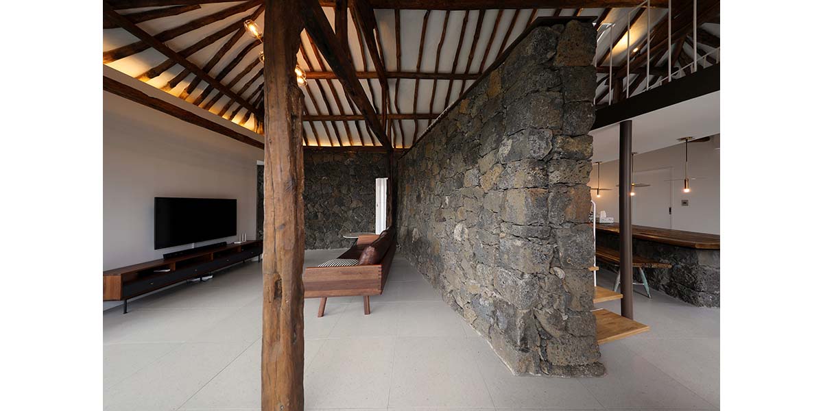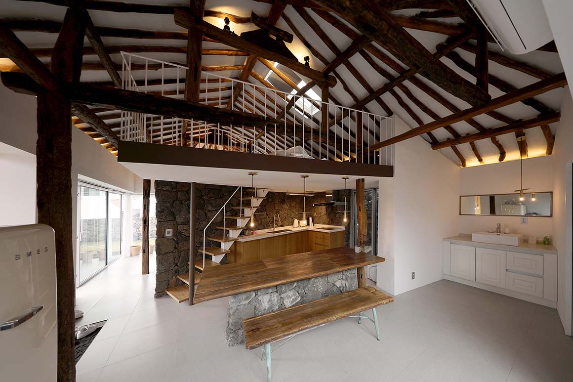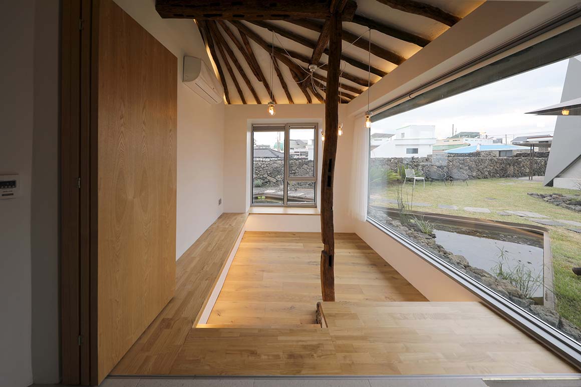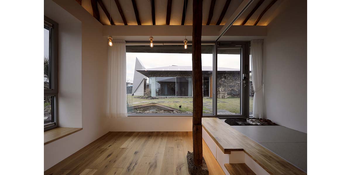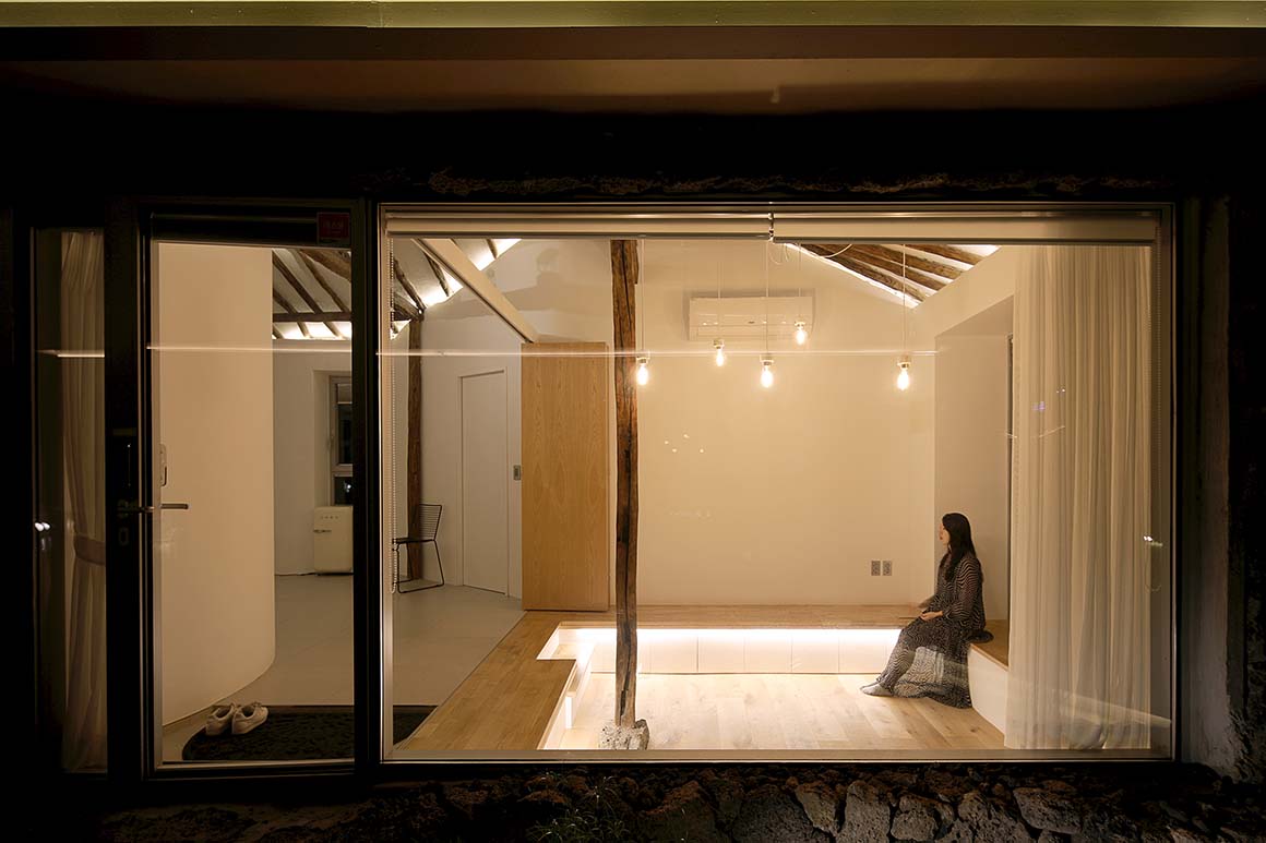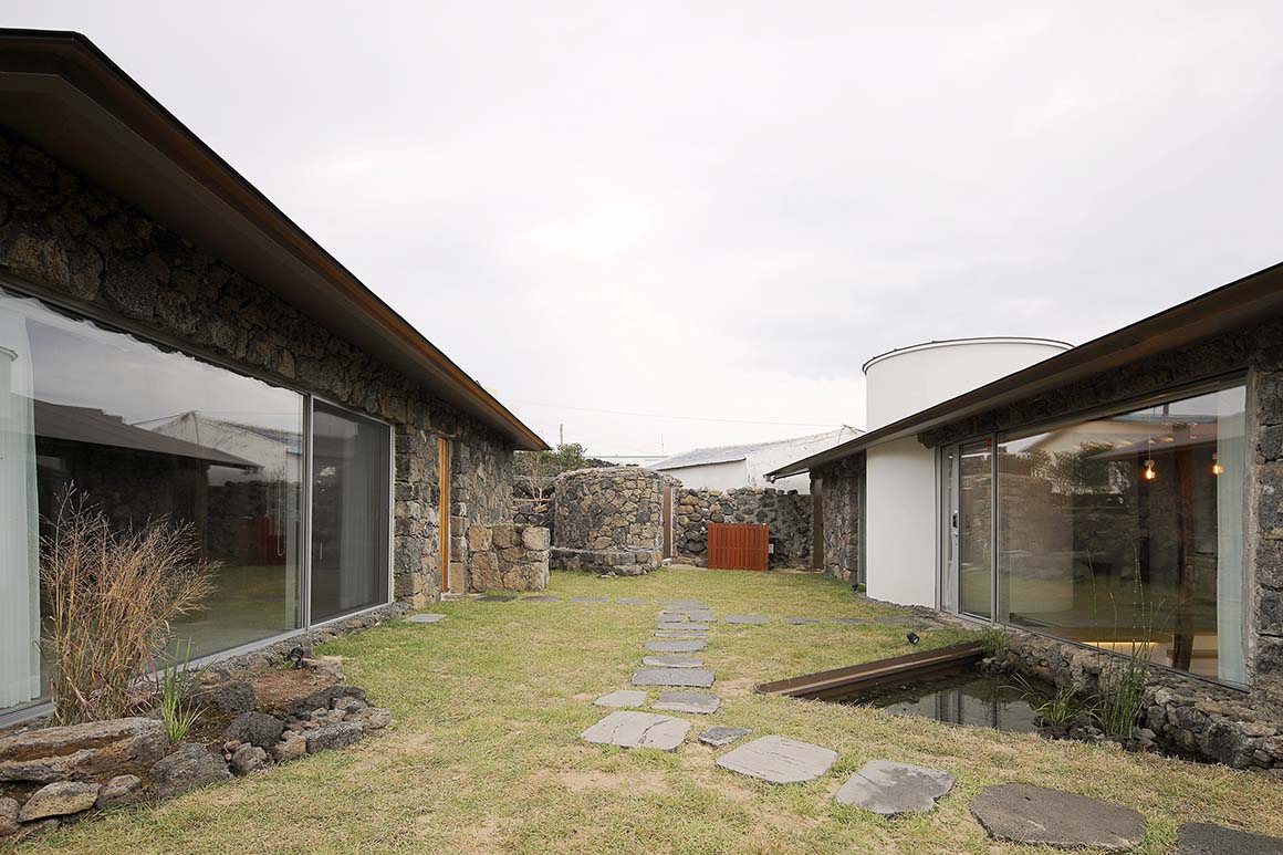 Woljeongdam was originally a typical Jeju stone house consisting of two buildings. However, considering its change from private residence to guest accommodation, the architect transformed the old home into a new type of house by exploring the relationships between the buildings scattered across the site.