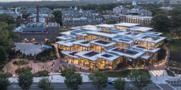 An old red-brick textile warehouse has been transformed into a showroom for upstart furniture brand ZIIN. The project site is located near Beijing’s Langyuan Station and was characterized by a large space with a pitched roof and brick walls built in the 1960s. A framework of square planes, partially enclosed within the existing structure, is inserted at a 45-degree angle to create a ‘space within a space’ that is both independent of the brick structure and connected at some points. This project aimed to transplant new functionalities, such as exhibitions and sales, into the aging industrial space to achieve balance.