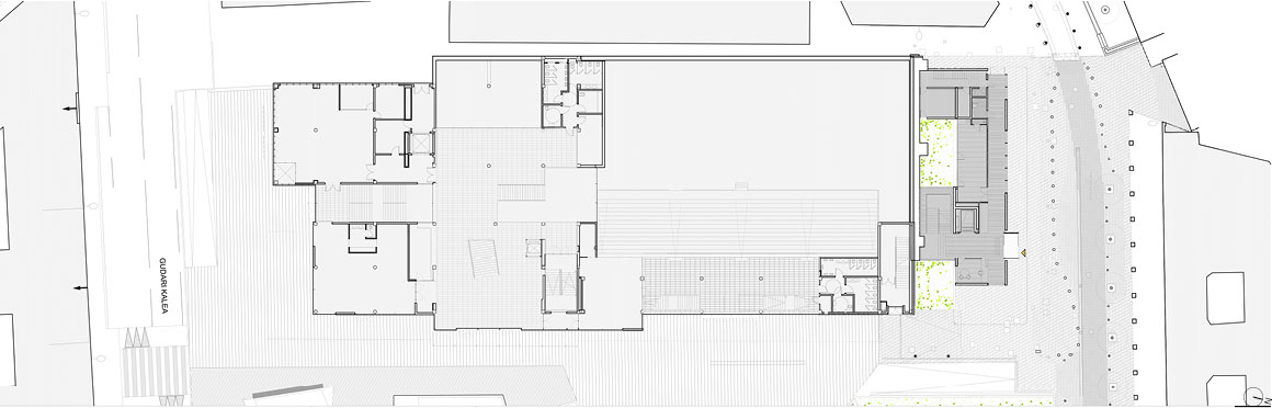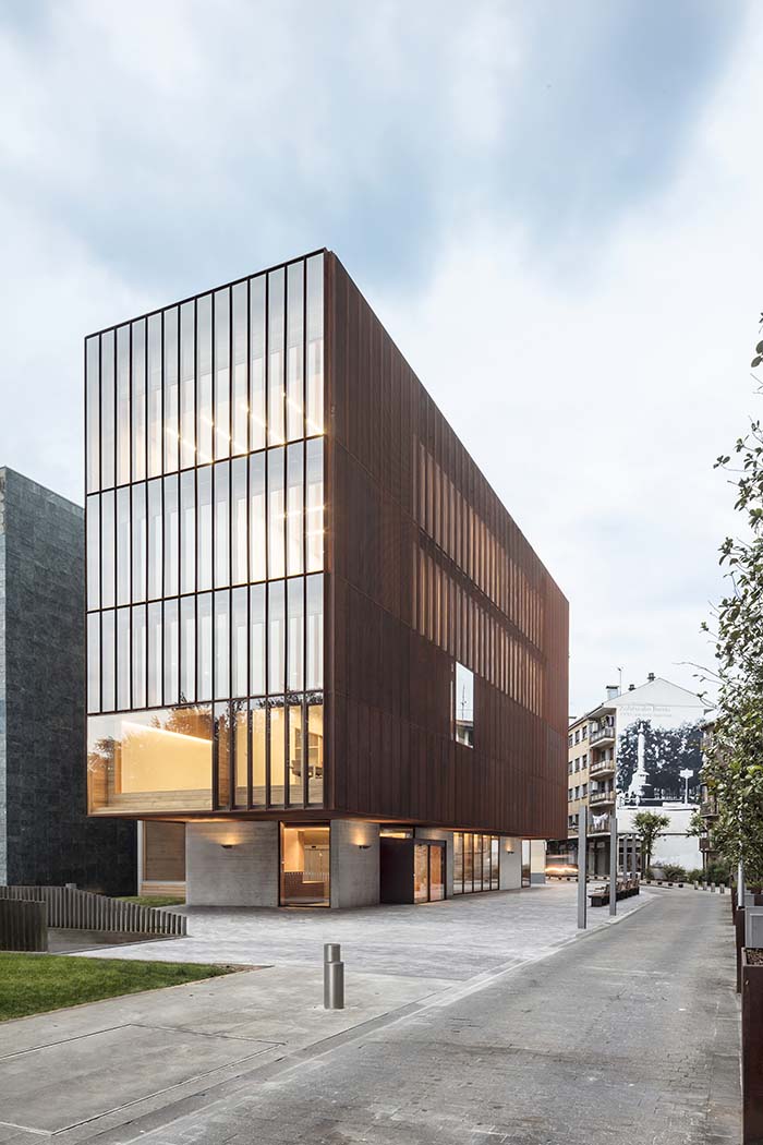 The Musika Eskola will work as an independent element, respecting the orthogonal criteria and abstraction of the adjacent cultural center.
