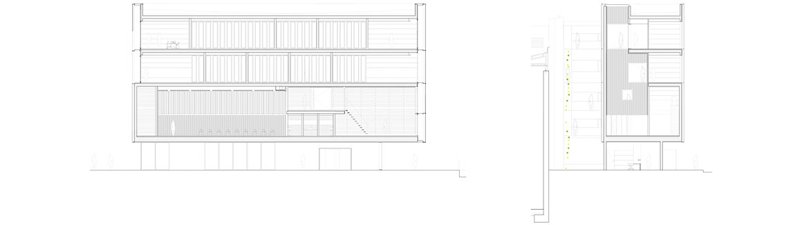 The building can be understood as an autonomous organism. A gap divides the old and new buildings, creating an extra facade to complete and resolve all the perimeter of the actual facilities. The old wall of the adjoining ball game court becomes the real protagonist of the project, its new visibility presenting different overlapping sections built at at different times.
